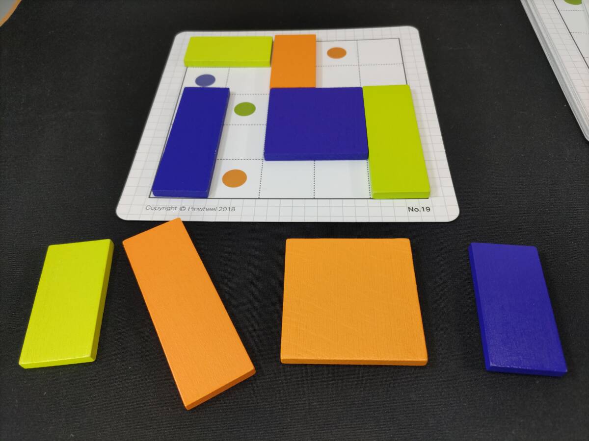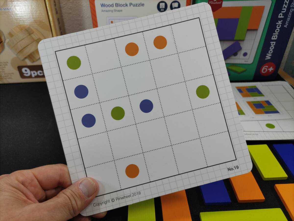★ Pinwheel・ピンウィール・イギリス カードに描かれた色と形が一致する木製のコマをすべて置くと完成になるパズルです。日本語の説明書(翻訳)はありませんが大人の方が理解しお子様に説明するのがよろしいかと思います