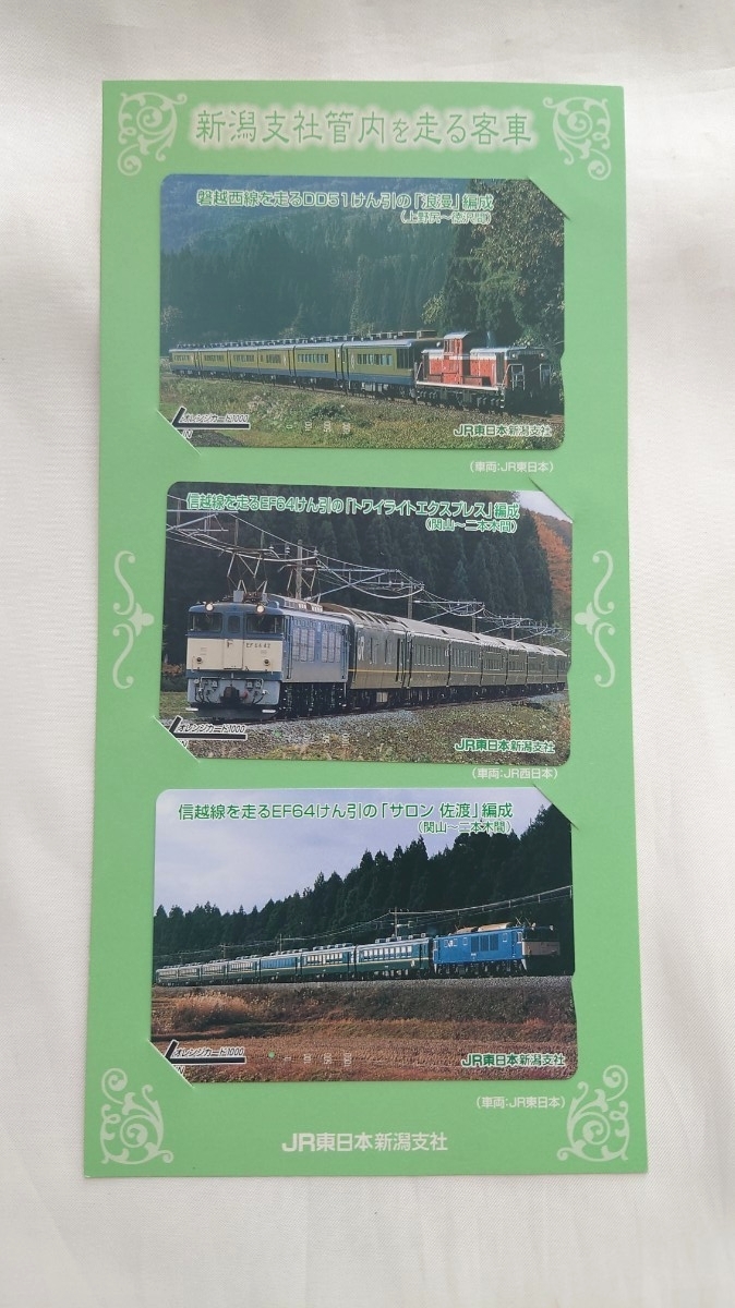 ●JR東日本●新潟支社管内を走る客車●記念オレンジカード1穴使用済3枚組台紙付