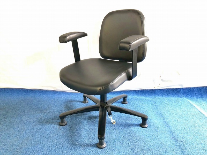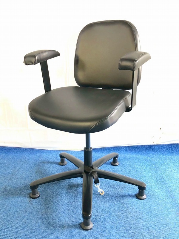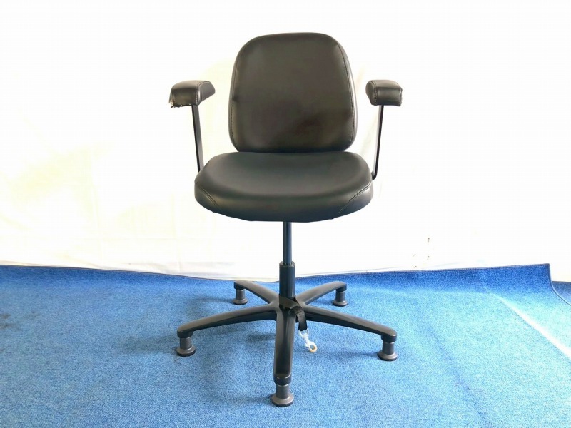 【米軍放出品】未使用品 ワークチェア オフィスチェア デスクチェア 椅子 イス 肘付 ブラック 安全ベルト付き (220) ☆BI12CK-W#25