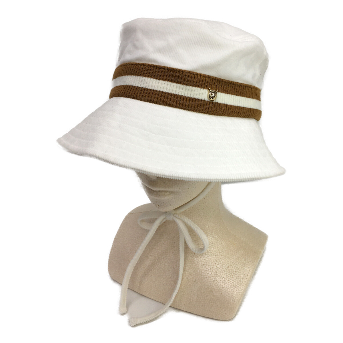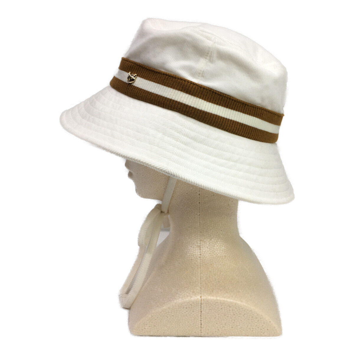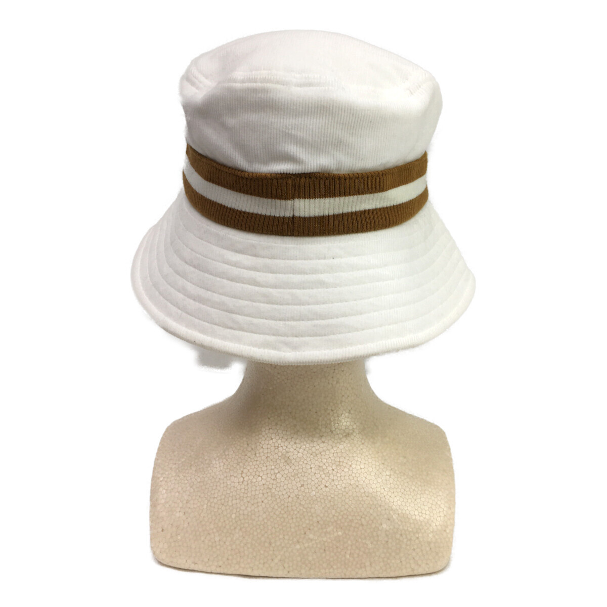 coco 中古 【値下げ】ワック WAAC バケットハット フリー ホワイト ブラウン ライン シンプル あご紐付き レターパックプラス発送可 K8091