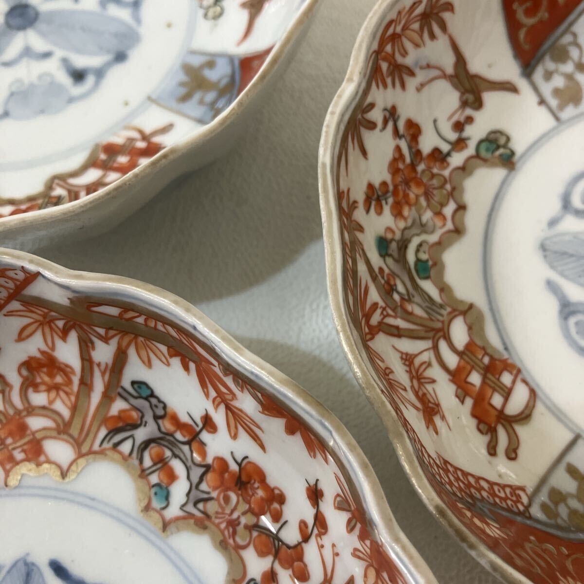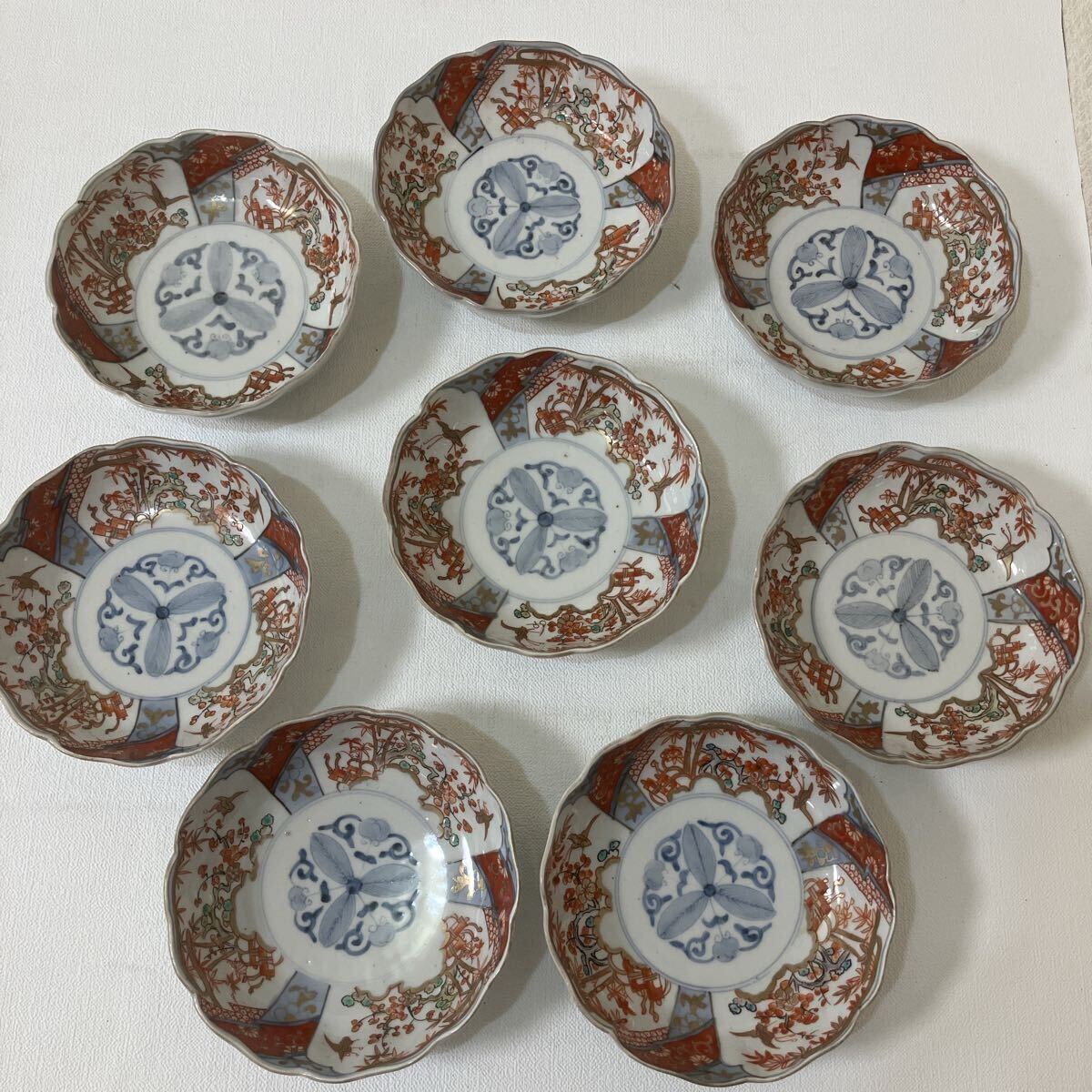 古伊万里 赤絵染錦 松竹梅 宝尽くし 膾鉢 なます鉢 8枚 江戸後期~明治期 直径14.5cm 盛鉢 骨董 和食器 アンティーク 蔵出し 手描き Antique Imari