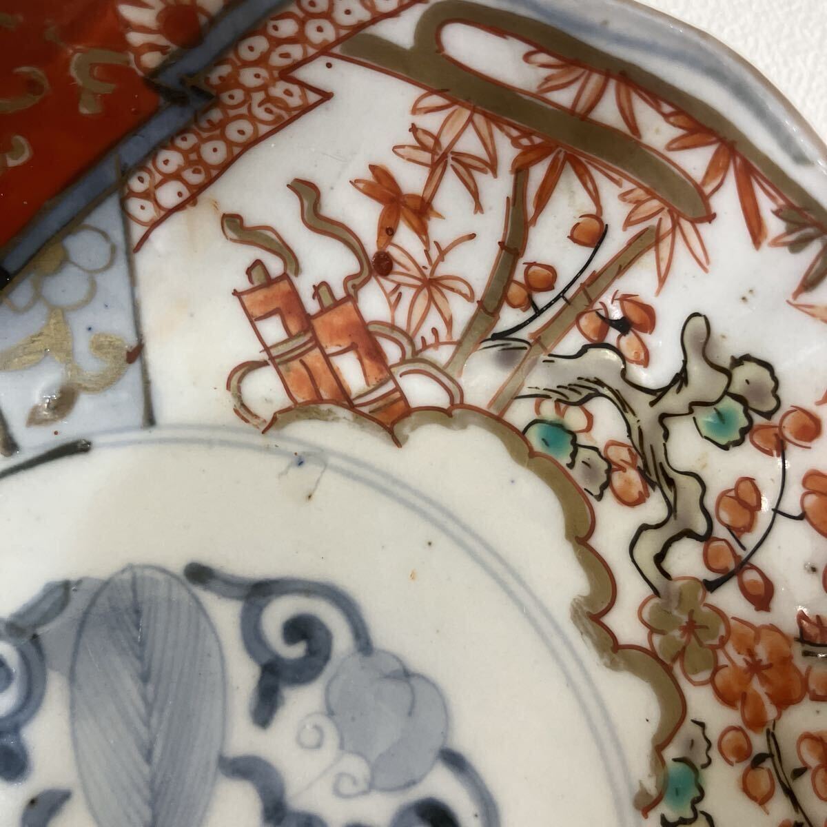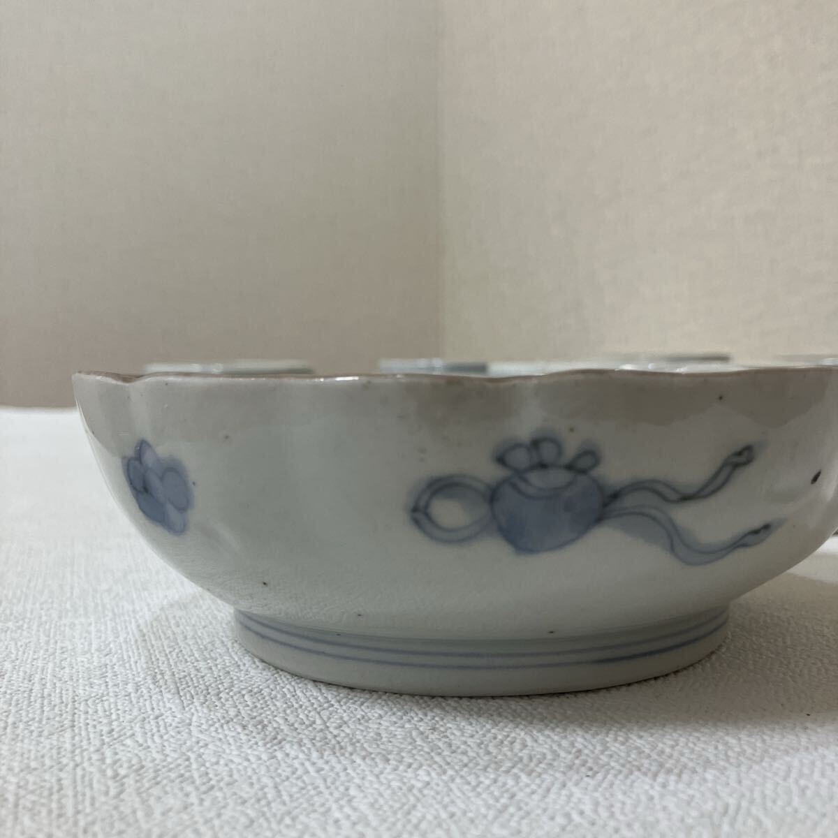 江戸後期〜明治期頃に焼かれたと見られる、古伊万里の赤絵染錦の膾鉢です。