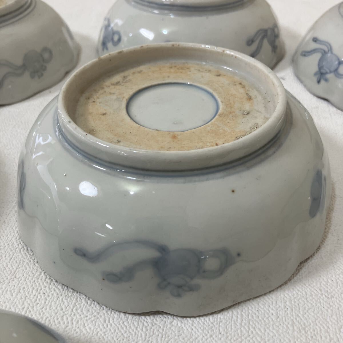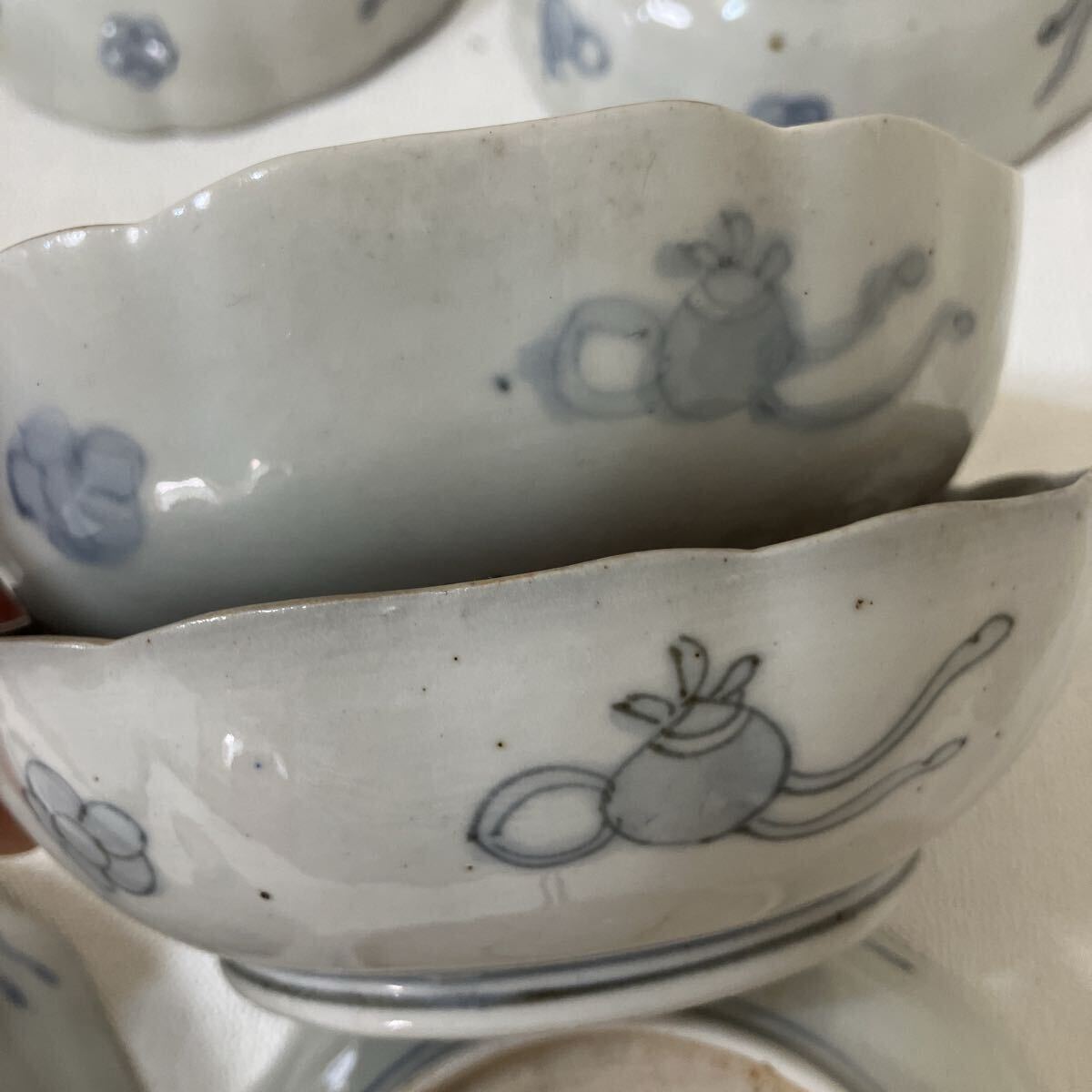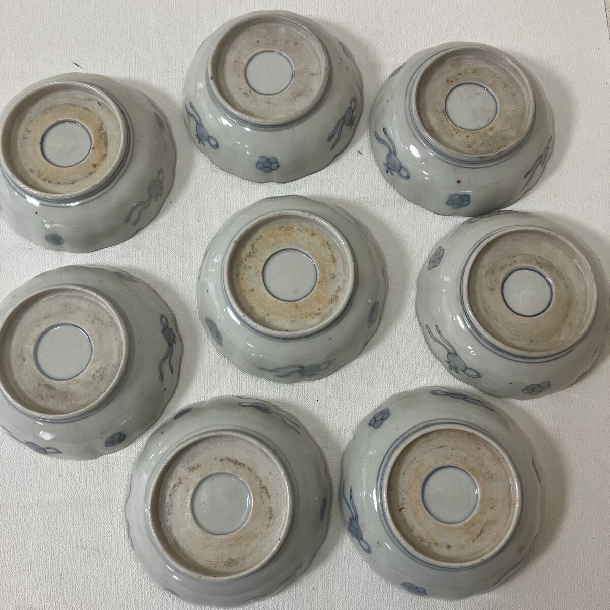 古伊万里 赤絵染錦 松竹梅 宝尽くし 膾鉢 なます鉢 8枚 江戸後期~明治期 直径14.5cm 盛鉢 骨董 和食器 アンティーク 蔵出し 手描き