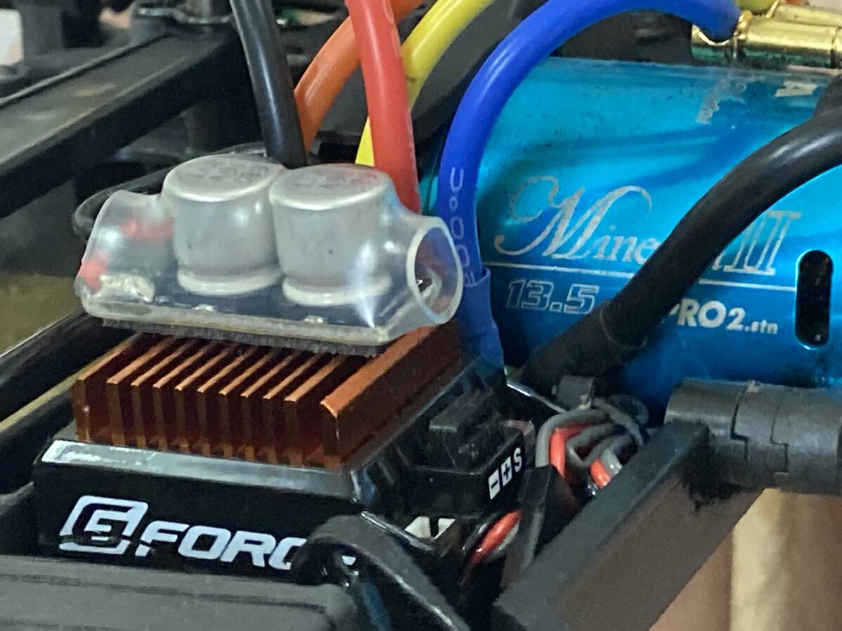 フタバの受信機を取り付けて、サーボ、モーター回転の動作確認をしています。