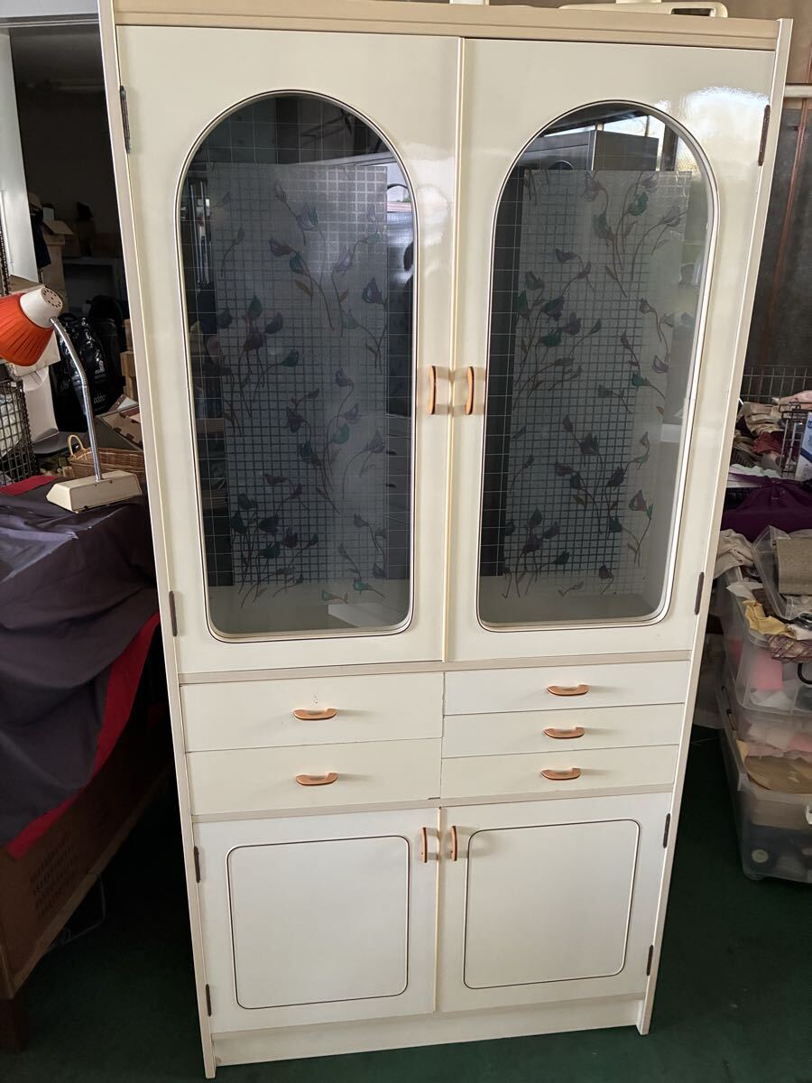 レトロポップ 食器棚 キャビネット 飾り棚 昭和レトロ アーチ 両開き ガラス戸ショーケース③