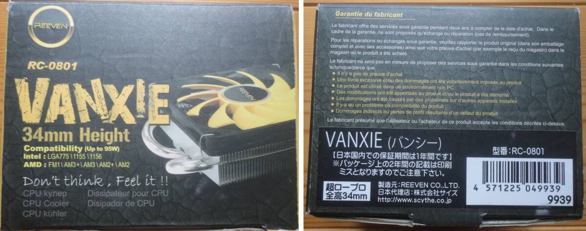 動作確認済 ヒートパイプ式CPUクーラー REEVEN RC-0801 VANXIE (intel/AMD両対応)(全高34mm超ロープロファイル仕様)