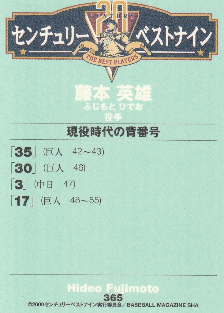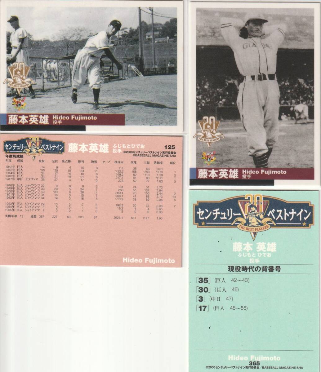 ●2000BBM 【藤本 英雄】 センチュリー ベスト9 2種セット:巨人 R2
