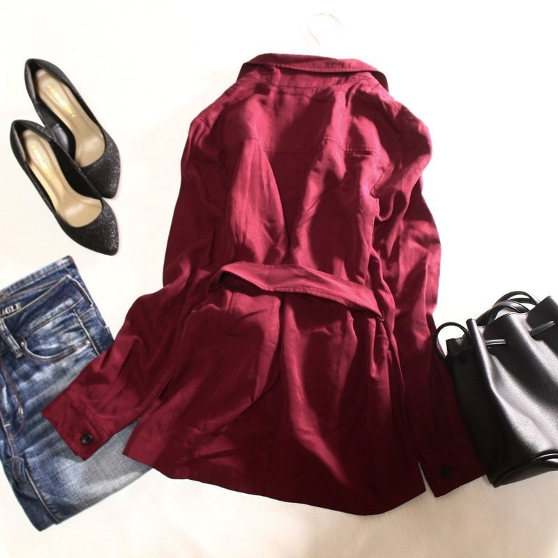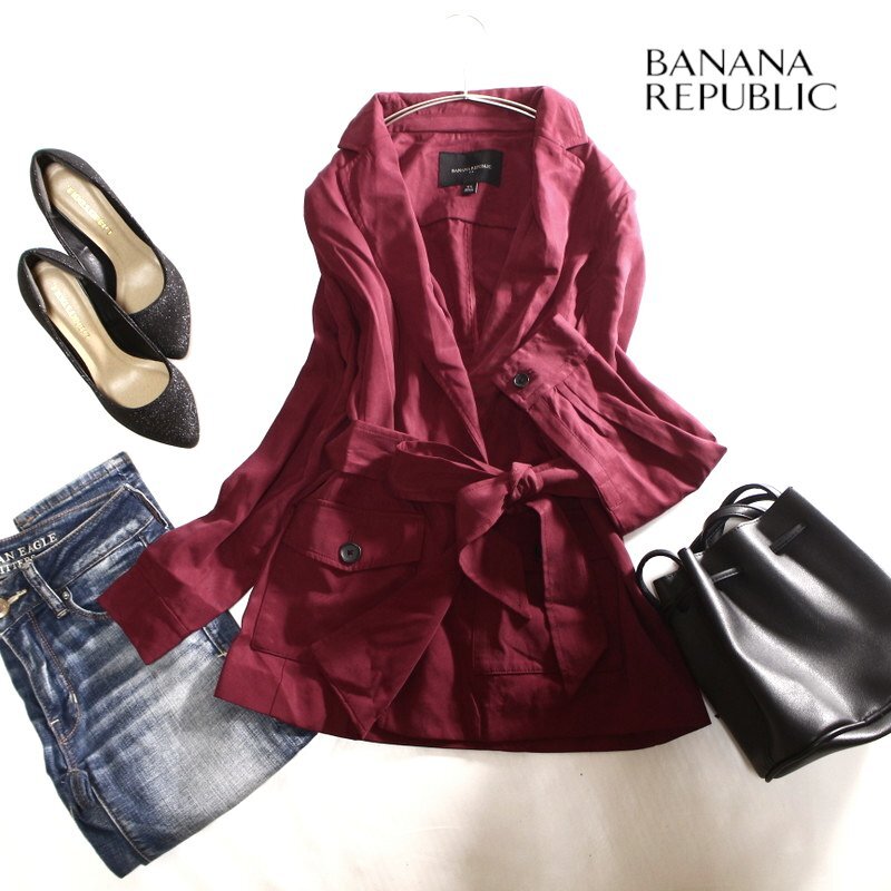 美品 バナナリパブリック Banana Republic 合物 ダークカラー ベルト付き ジャケット 羽織 XS ダークレッド 赤 秋 冬
