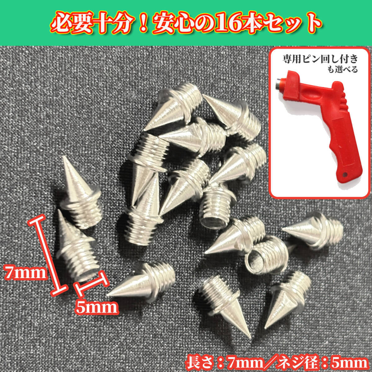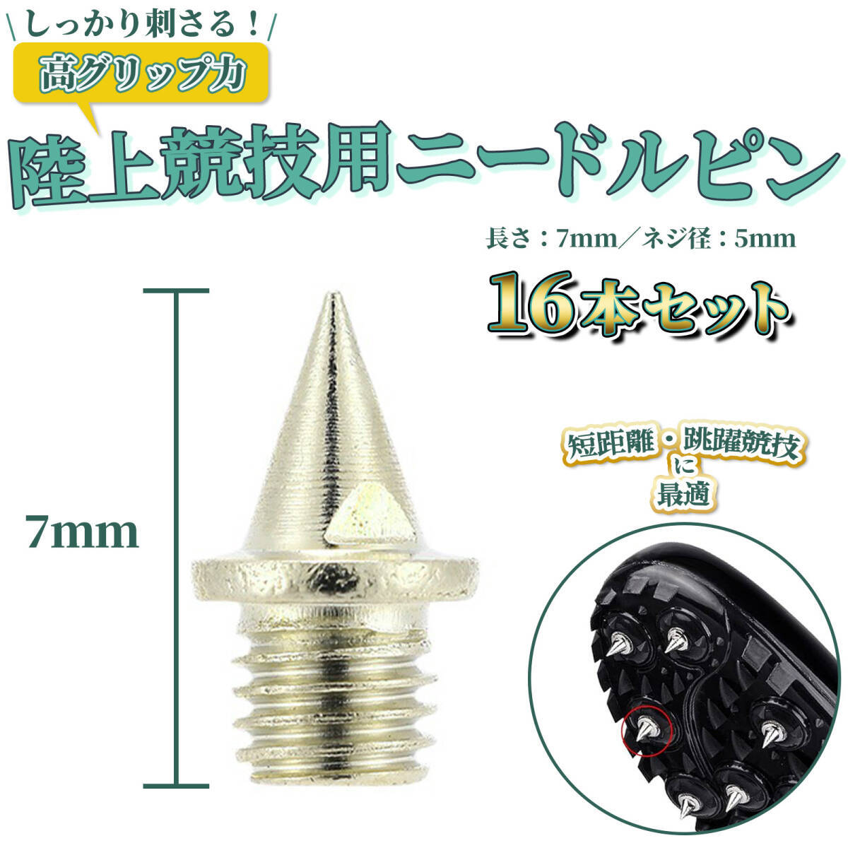 ニードルピン 16個 陸上 スパイクピン 短距離 シューズ ランニング 部活 競技 交換 スチール 7mm 取り付けハンドルセット