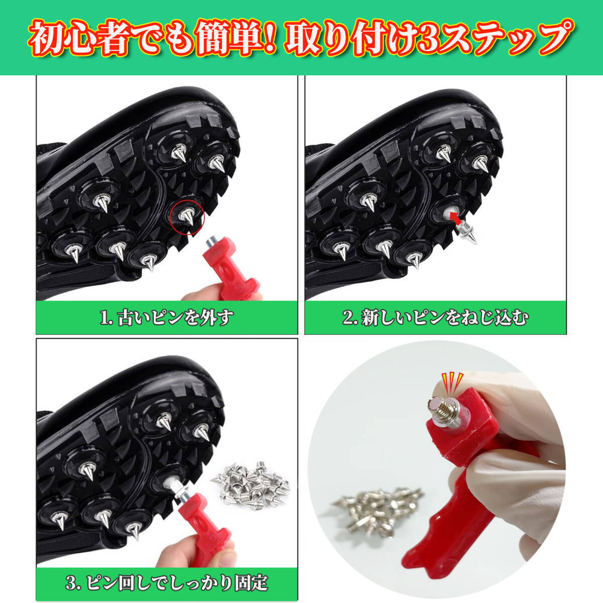 • 先端を鋭めに設計しているため、タータンに深く刺さりやすく、滑りを抑えてスタートダッシュやコーナリングをしっかりサポートします。 純正ピンから交換することで、グリップ力の違いを感じやすい設計です。