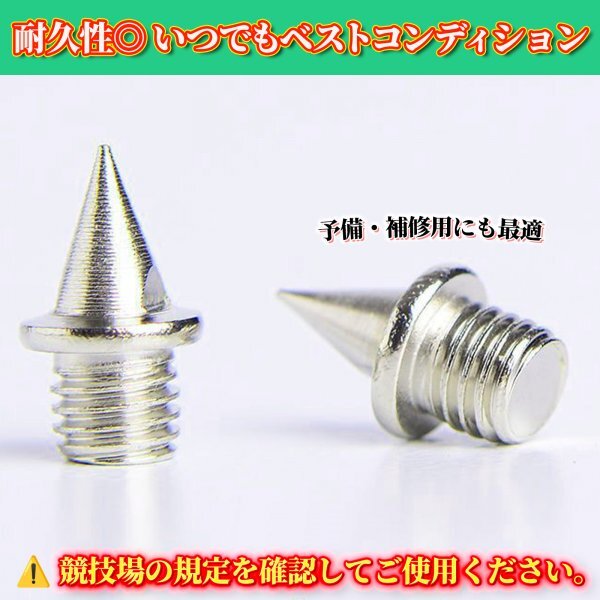 • 耐久性に優れたスチール素材を採用し、ピンの長さは約7mm、ネジ部の径は約5mmで、多くの陸上用シューズに取り付け可能です。 交換式で補修や予備、ビスとしても活躍し、ケースで保管すれば機材管理も安心です。