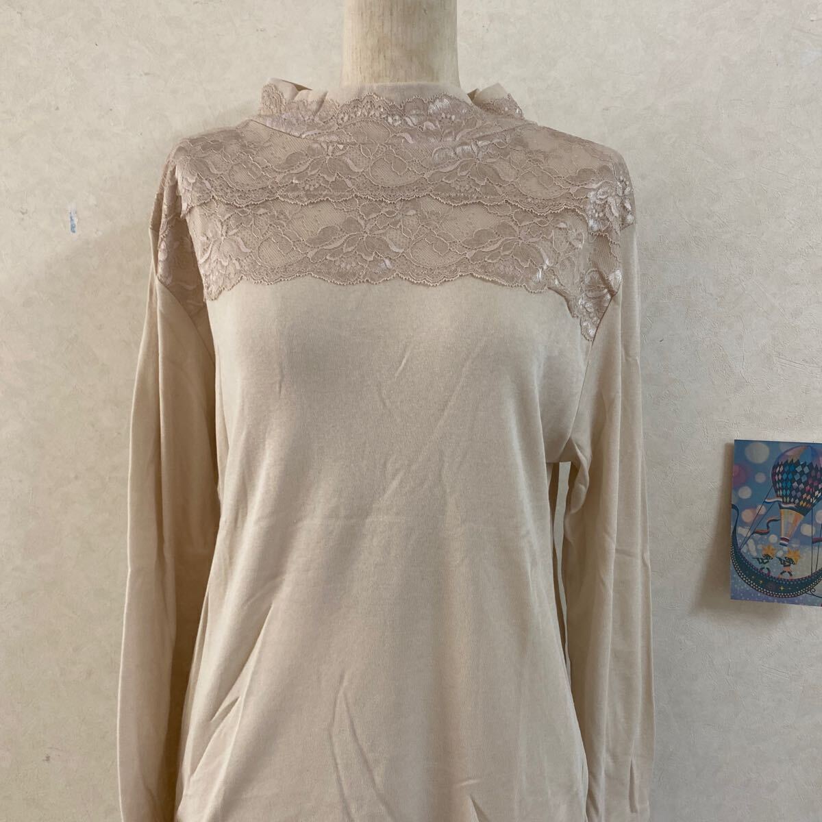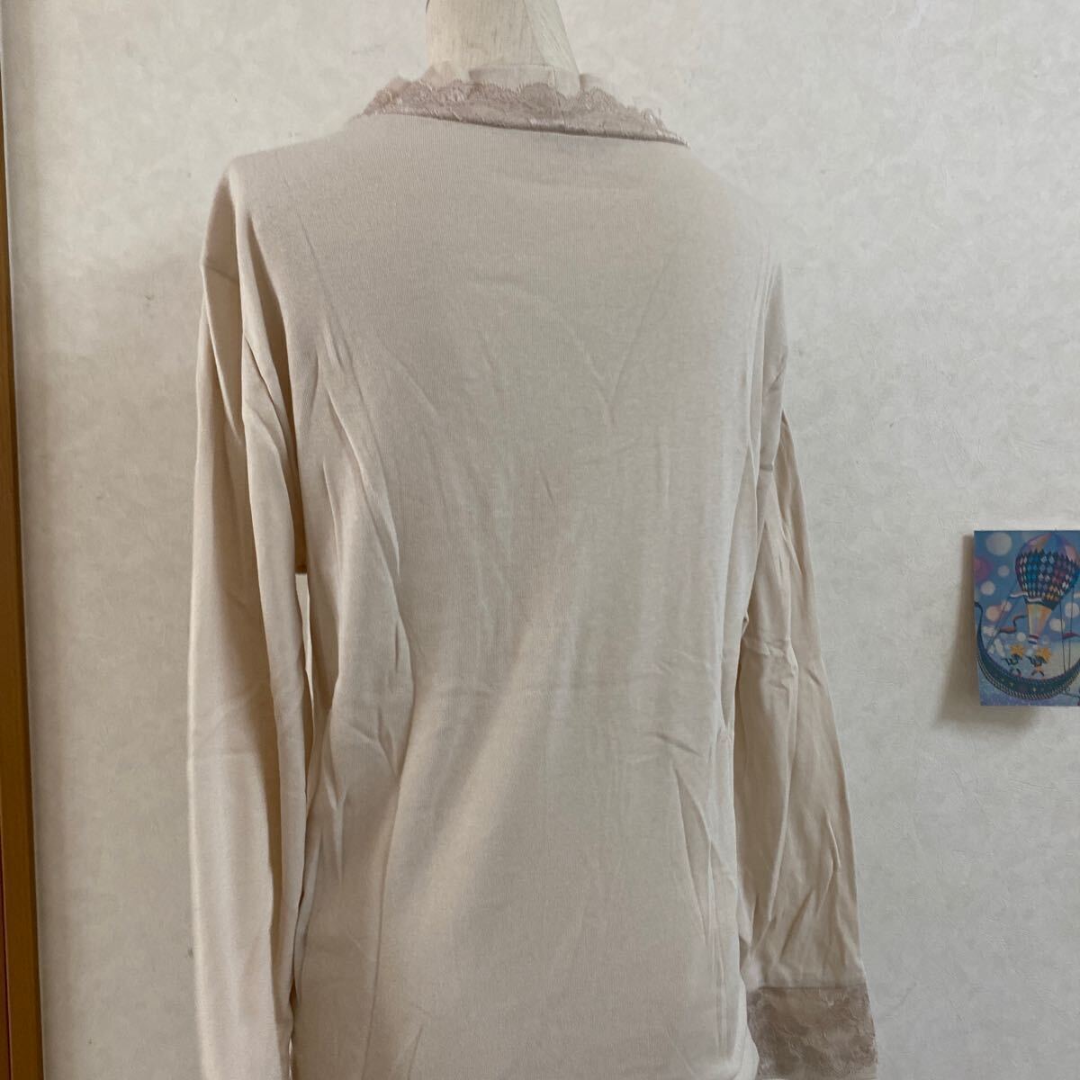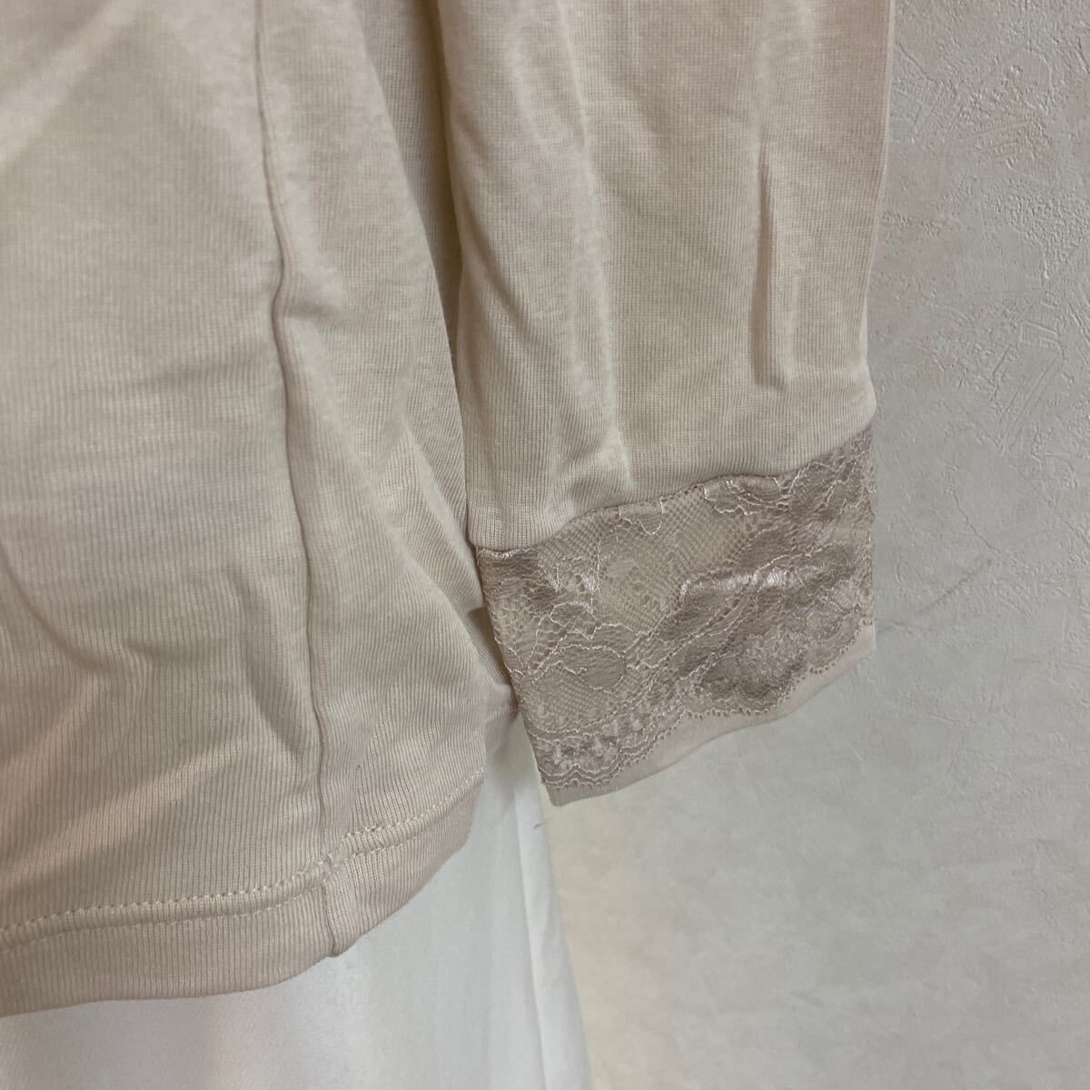 KN2425 *5L 大きいサイズ 華やぎ 綿100%レースインナー ライトベージュ 長袖カットソー