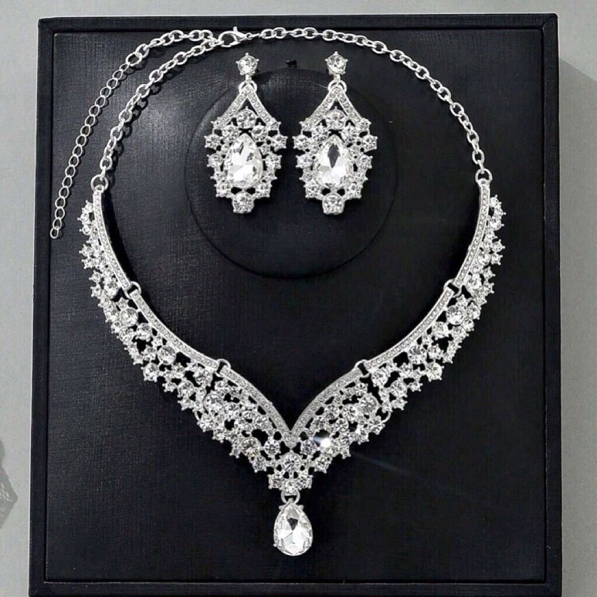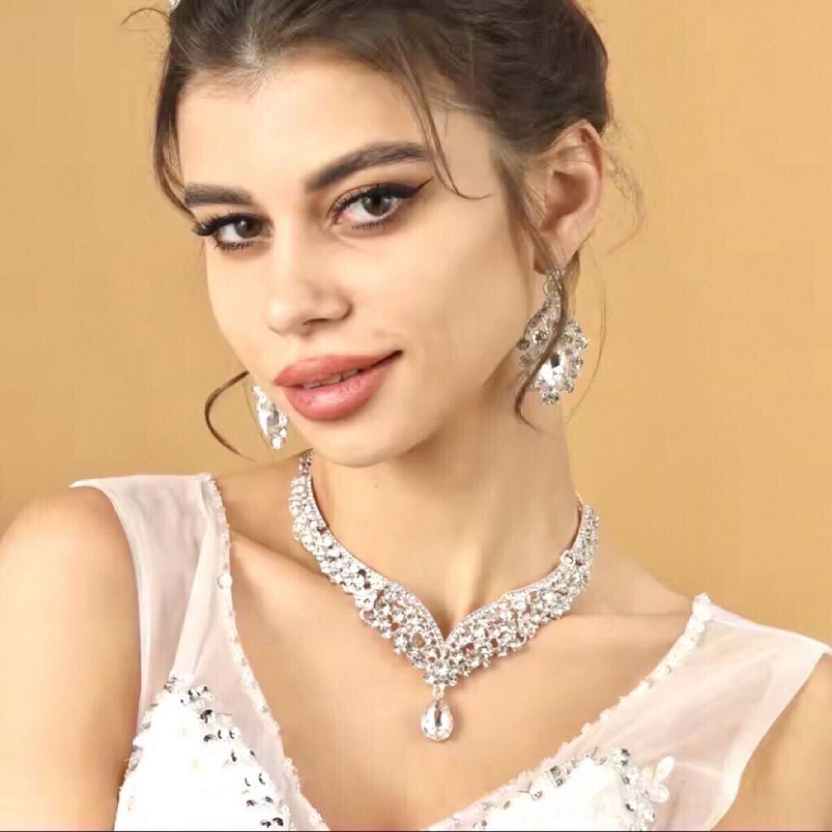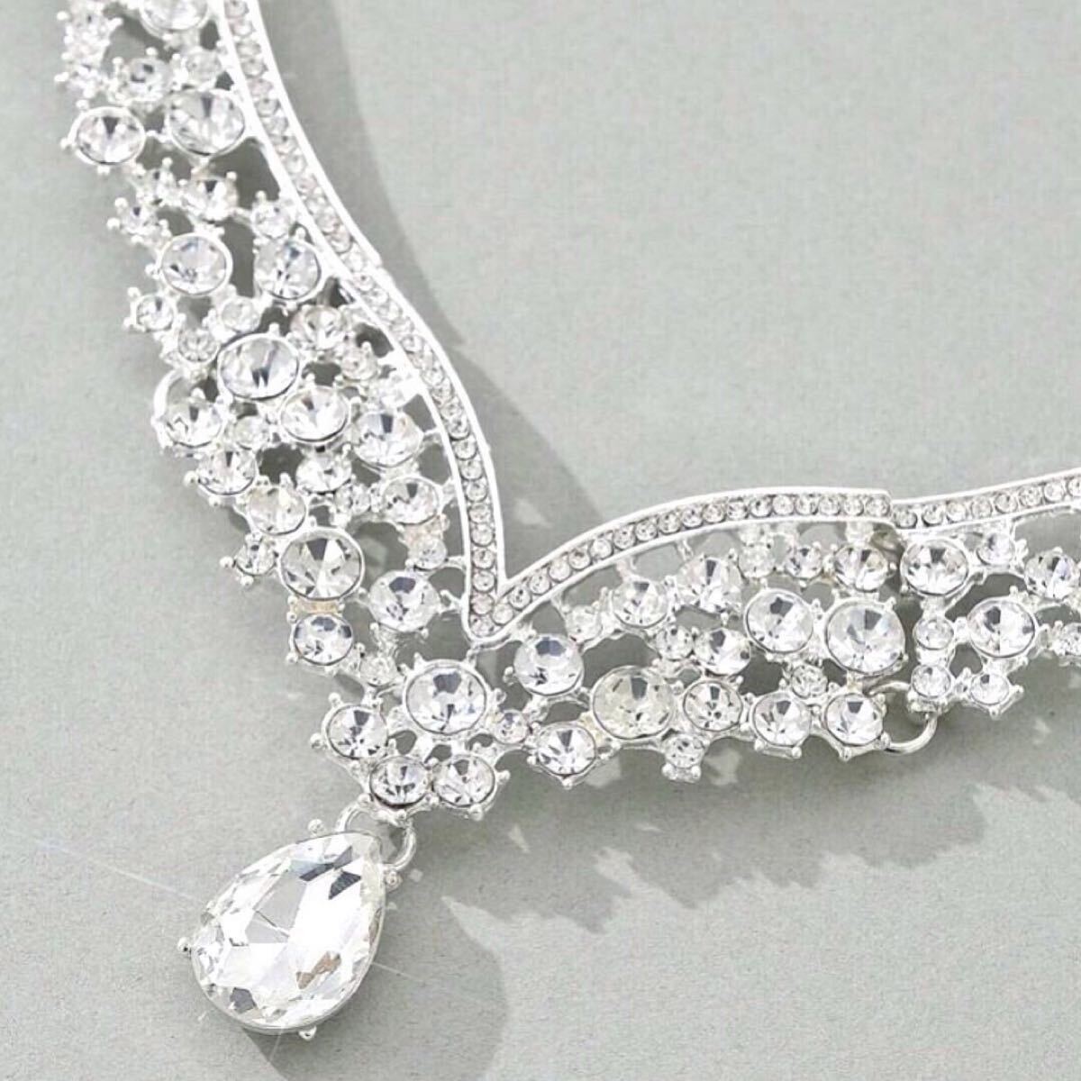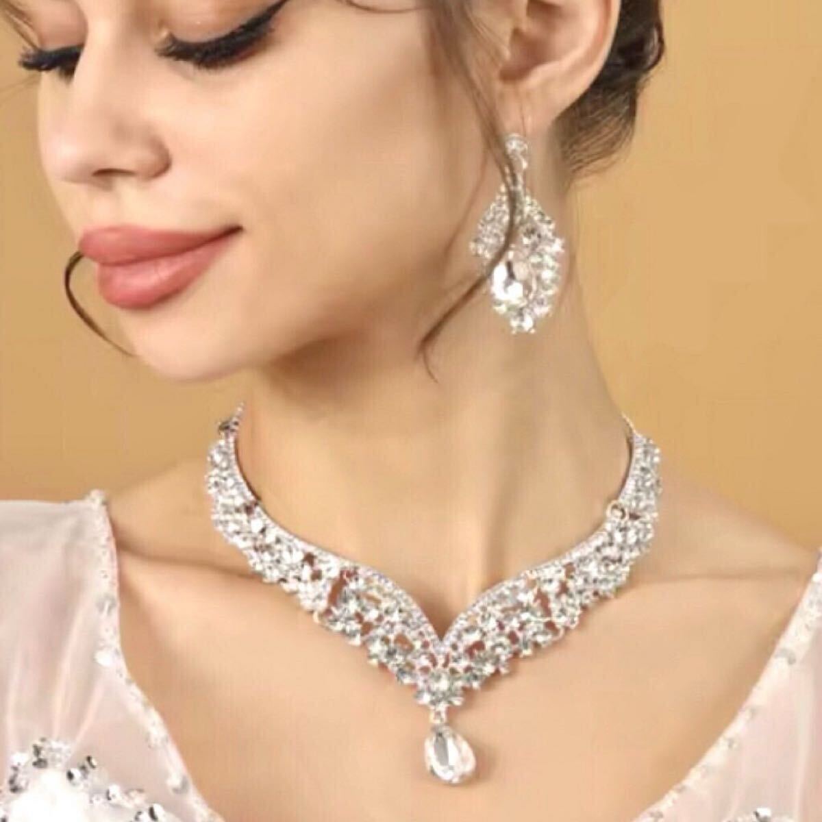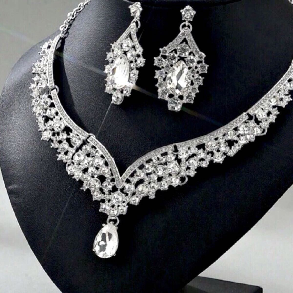 ヨーロッパ風 ラインストーンネックレス&イヤリングの2点セット◎