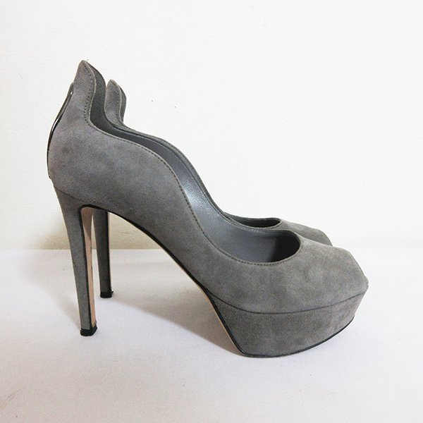*Sergio Rossi セルジオロッシ パンプス オープントゥ ヒール デザイン スエード 35 グレー イタリア製*◆素材 : スエード◆カラー : グレー◆サイズ : 35 / ヒール高 10.5(cm)◆外ランク : B / 内ランク : ◆付属品 : 箱 / 保存袋◆状態 ソールに少々使用感、スエードにスレ等ございますが、その他目立ったダメージ等はございません。 中古品、個人宅保管をご理解下さい。外観は画像もご確認ください。◆配送 日本郵便株式会社 ※一部地域は他配送会社使用