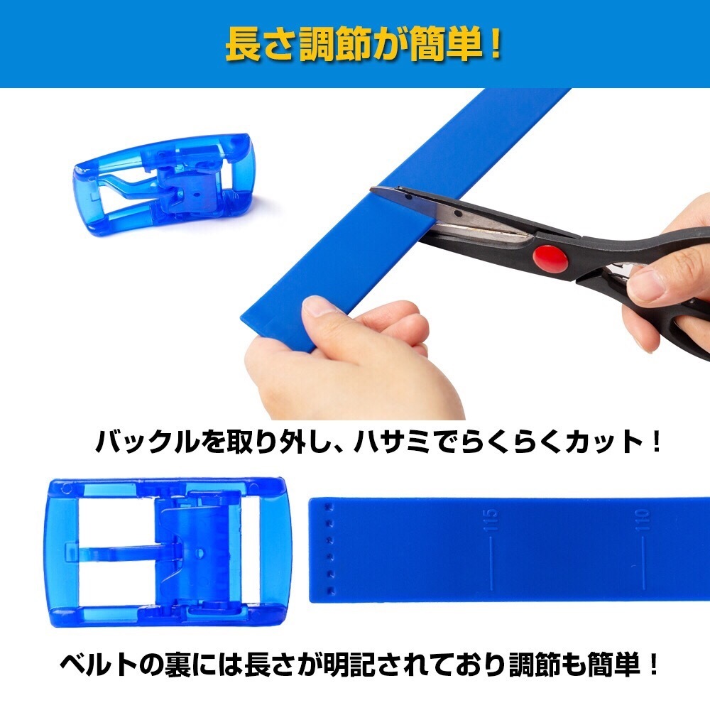 ● ハサミでカットして、サイズ調整が可能です。裏に5cm刻み(95cm~115cm)で長さが書いてあります。