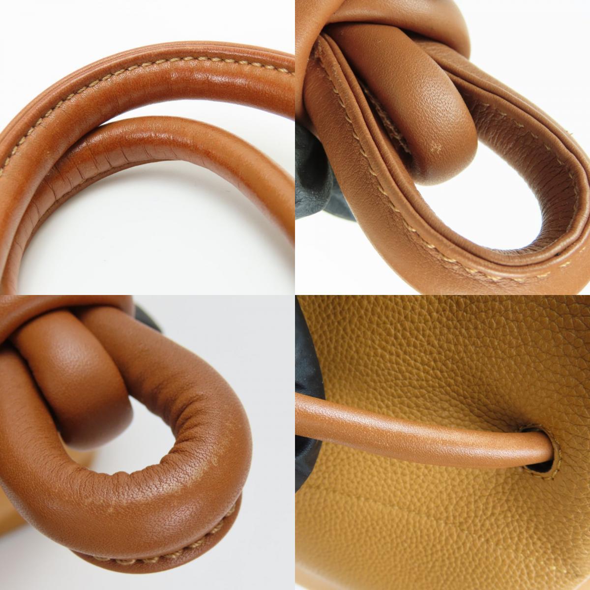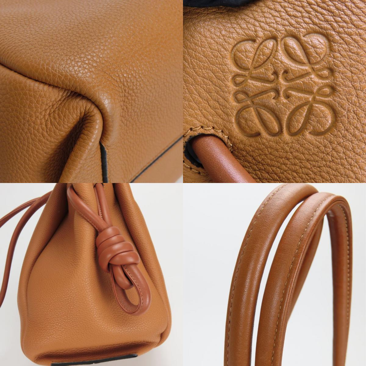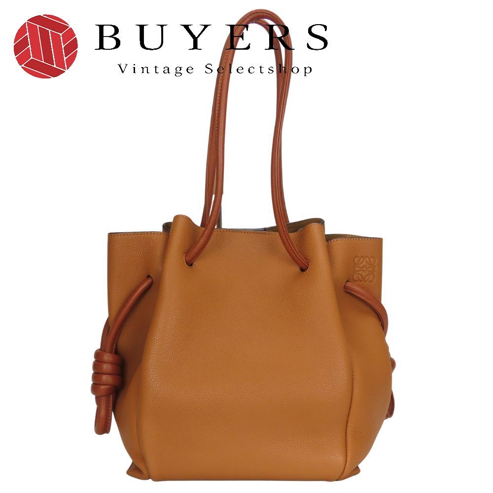 中古 ロエベ トートバッグ フラメンコノット レザー キャメル ブラウン 肩掛け アナグラム レディース 女性