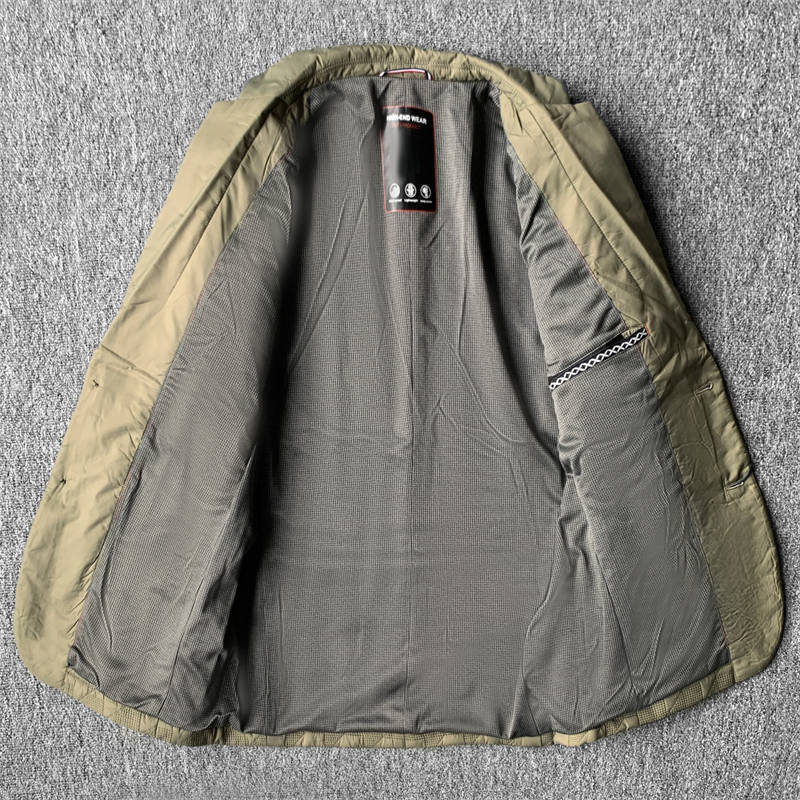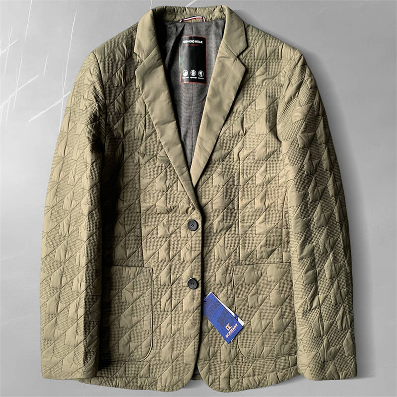 9829-3XLグリーン 中綿 テーラードジャケット メンズ 桑蚕シルク詰め ジャケット 新品DCKMANY 防寒 厚手 秋冬 ビジネス 2ボタン ブレザー