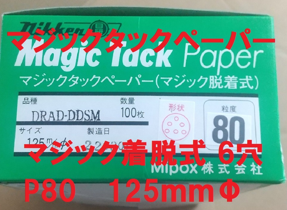 マジックタックペーパー P80 125mmΦ 1枚から 日研 マジック着脱式 6穴あき Mipox 研磨機用