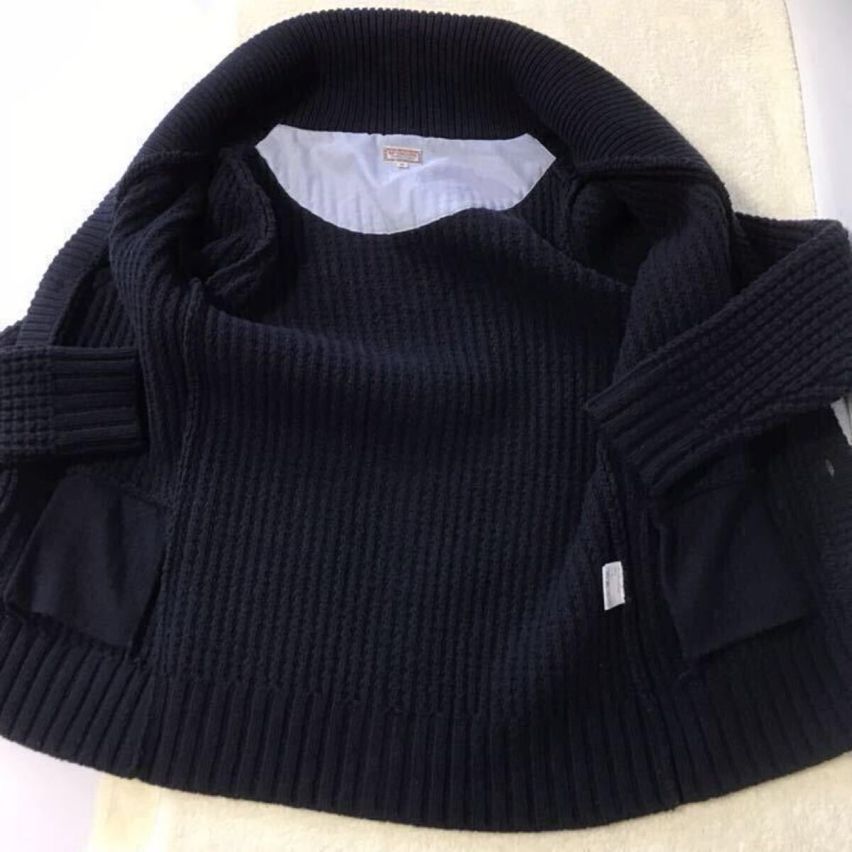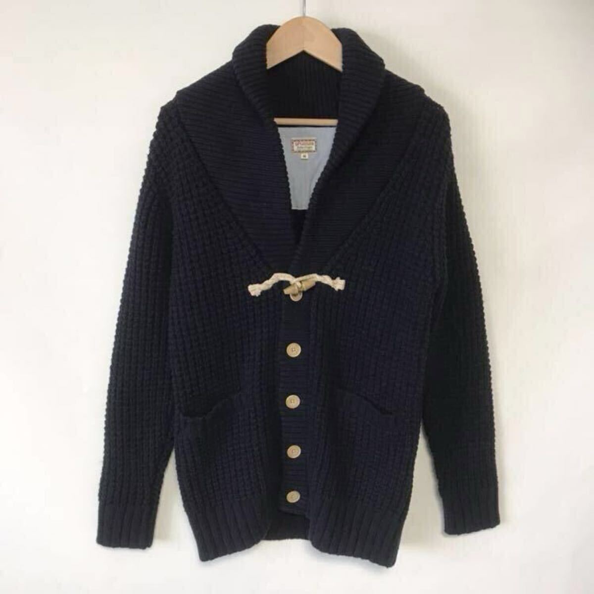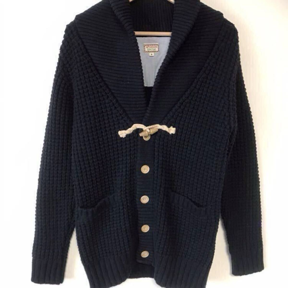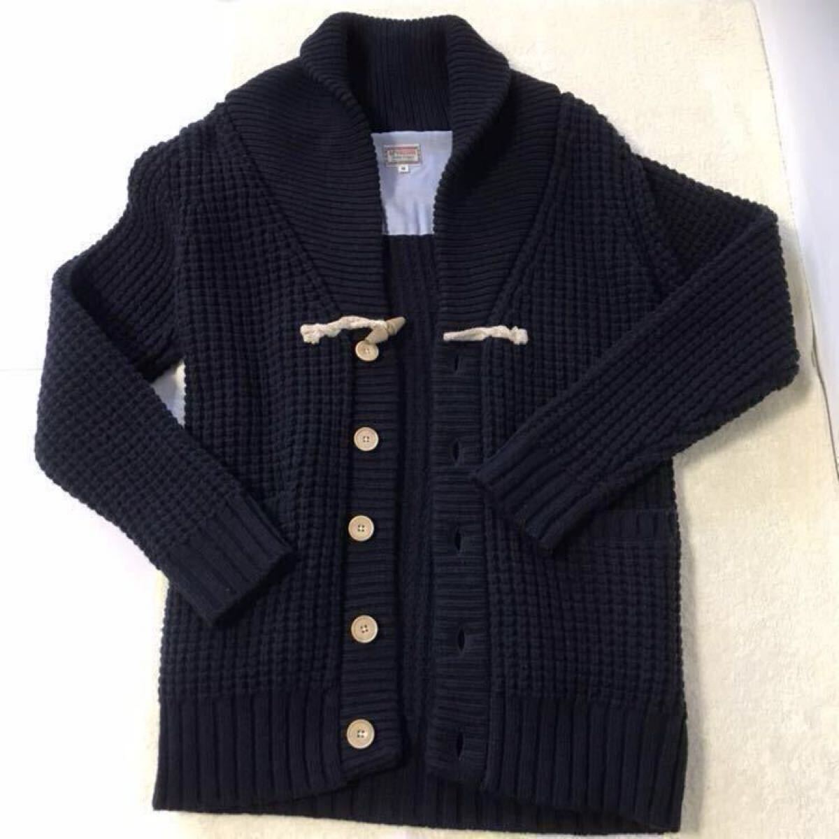 ☆状態と詳細→厚手ニット(網目がワッフルの様)のショールカラーカーディガンです。