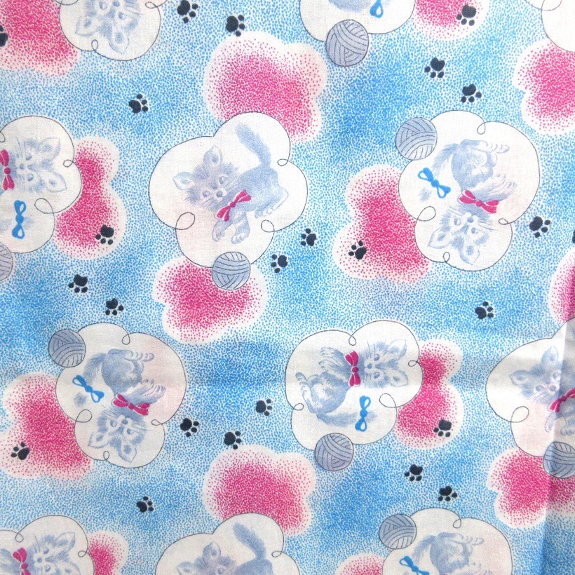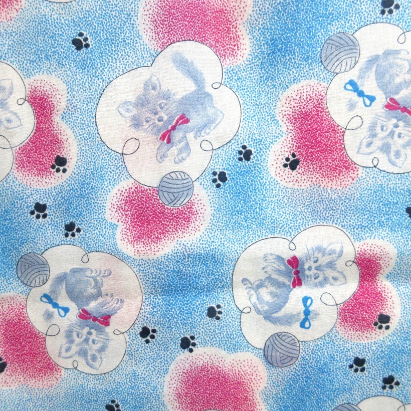 ■ヴィンテージ・リボンねこちゃん。極薄い小さな汚れがある所あります。パッチワーク・ポーチやバッグなど布小物などに。