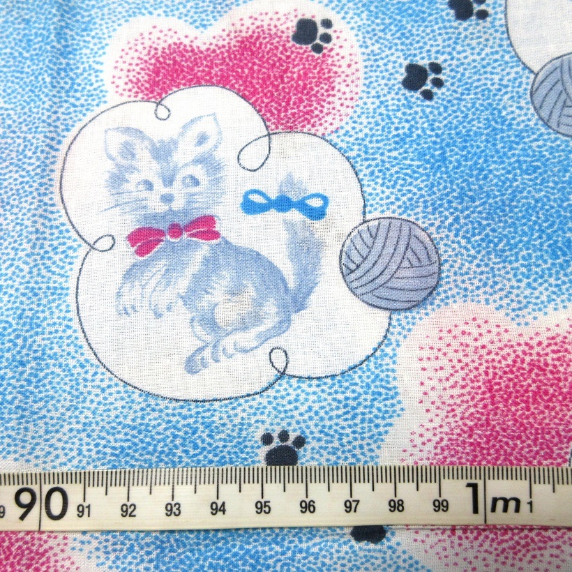 生地 ねこアニマル りぼん かわいい 糸玉 レトロ 入園入学準備 ヴィンテージ