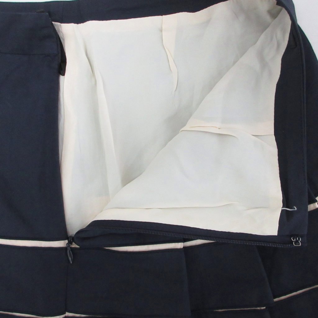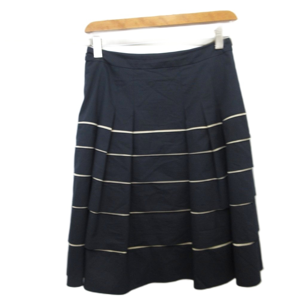アナイ ANAYI フレアスカート フリル ひざ丈 38 M 紺 ネイビー アイボリー 11114-05-64-380 ■YHS4 レディース