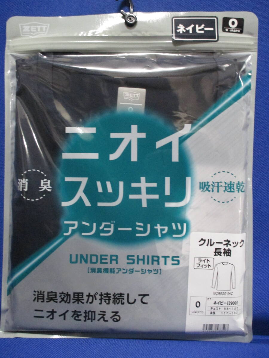 送料無料◆長袖◆O◆ネイビー◆アンダーシャツ◆ゼット◆即納◆消臭◆ZETT◆BO89201NC◆野球◆吸汗速乾◆伸びる◆ナノ消臭