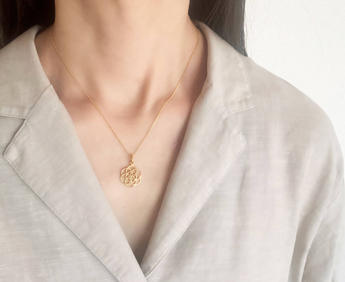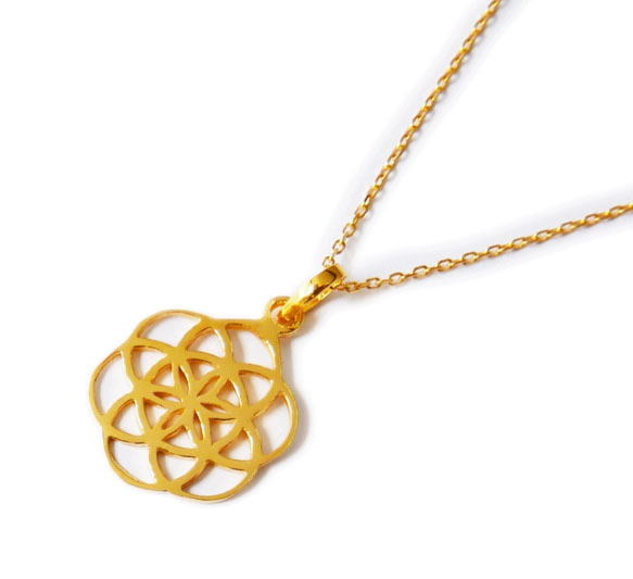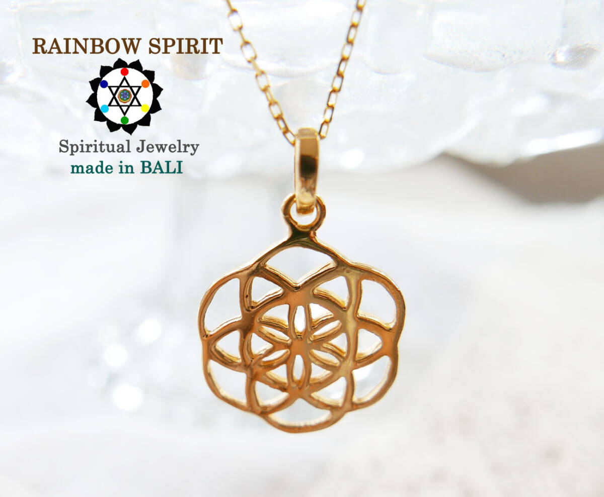 ☆☆送料無料☆☆神聖幾何学模様・シードオブライフ☆☆バリ島の僧侶の祈祷&浄化をほどこしたヒーリングペンダント☆☆純金加工/ヨガ/YOGA