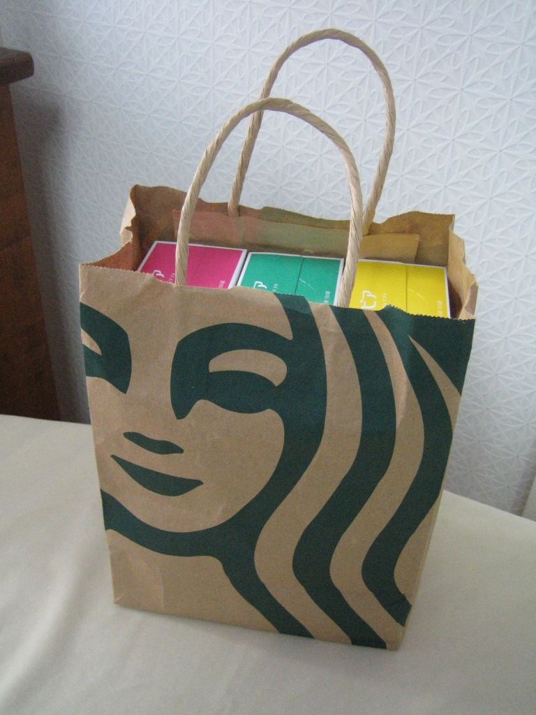 微起毛のギンガムにも千鳥にも見える生地で紙袋タイプの袋を作りました