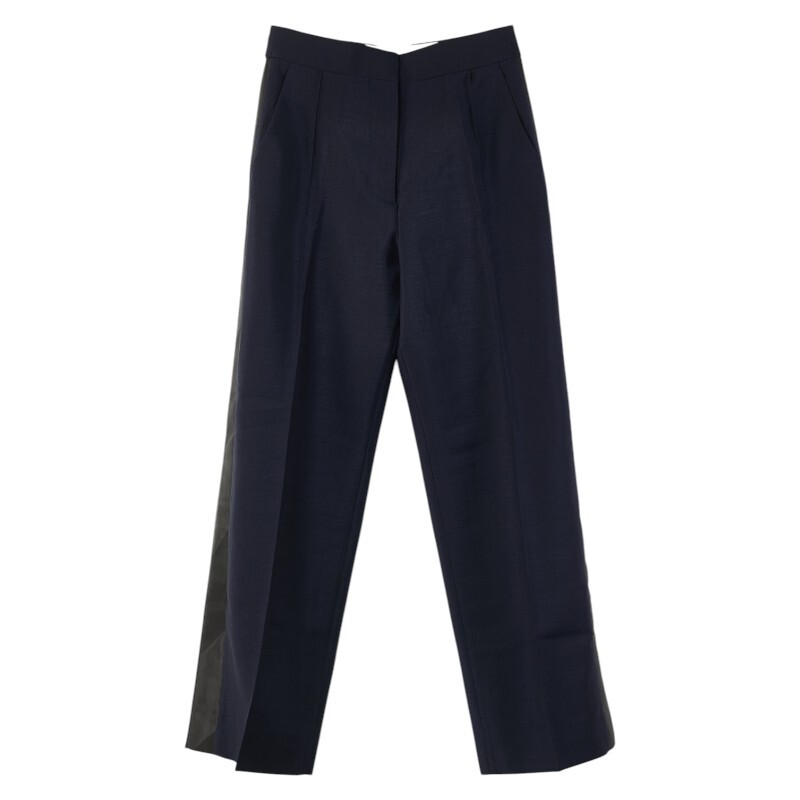 バーバリー サイドライン パンツ スラックス サイズ:38 ネイビー ブラック ウール モヘヤ レディース BURBERRY 【中古】