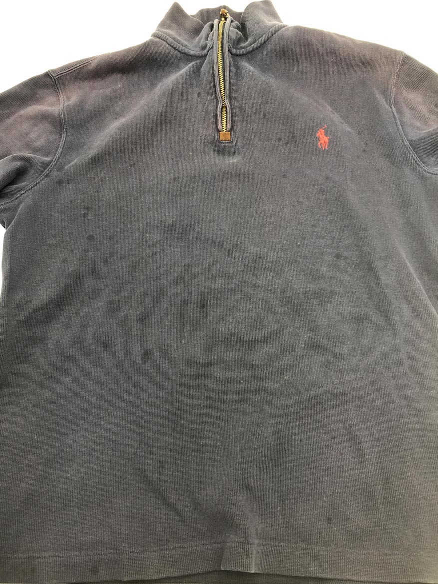 商品の状態 | 肩から腕にかけて色褪せ 首周りに白っぽい薄汚れ 全体の所々に複数のシミ スリットにほつれ 少々使用感がございますが、まだまだ活躍してくれると思います。 (当方管理番号:amfi172738-t) | ||||||||||