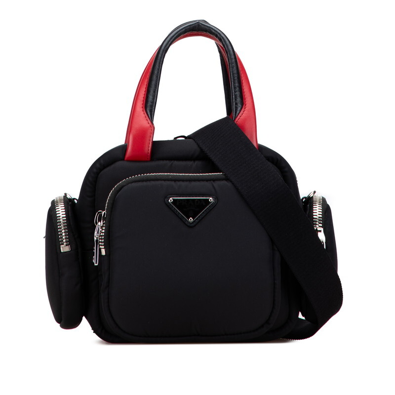 プラダ 三角ロゴプレート ハンドバッグ ショルダーバッグ 2WAY 1BB061 ブラック レッド ナイロン レザー レディース PRADA 【中古】