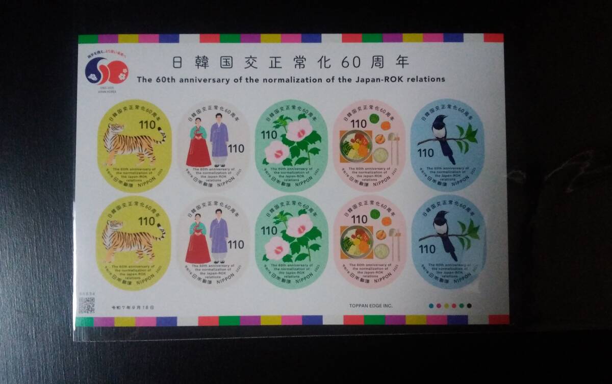 日韓国交正常化60周年記念切手グリーティング切手 110円切手 シール式シート