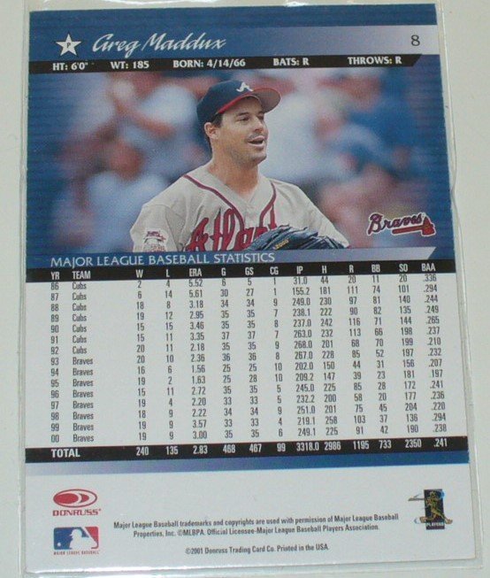 Donruss 2001/BRAVES* GREG MADDUX(8)20th Anniversary