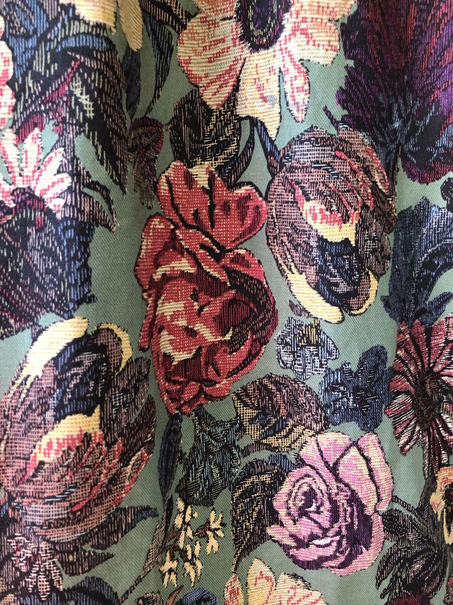 ゴブラン織リアルプリントで斜め方向にストレッチが効いてます。厚みのあるゴブラン織ではなくしなやかな素材です。プリントのみゴブランプリントです。高級感ある素材です^_^
