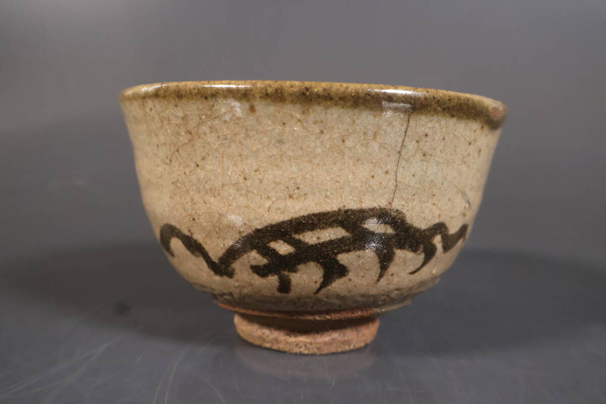 【和】(A3455) 時代古作 古唐津 絵唐津茶碗 茶人箱書有 茶道具