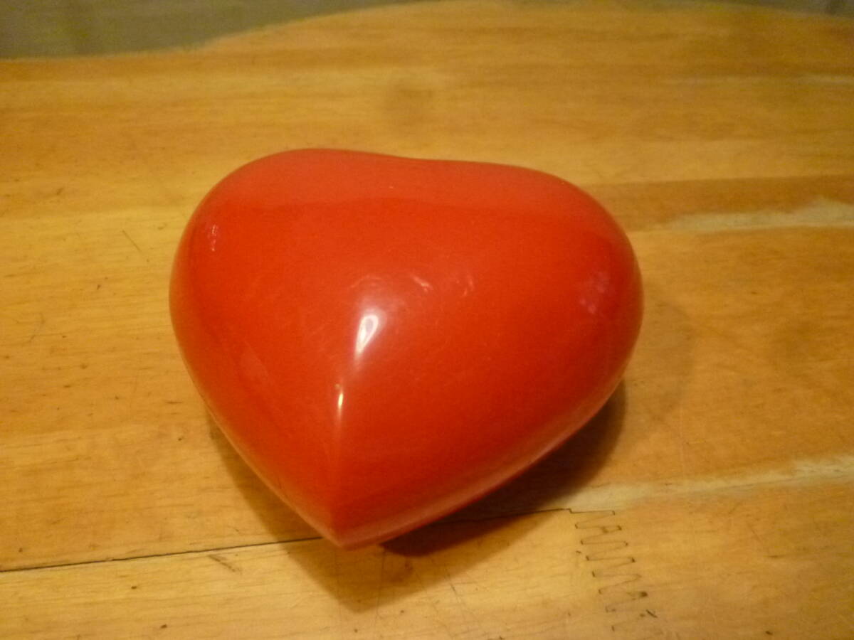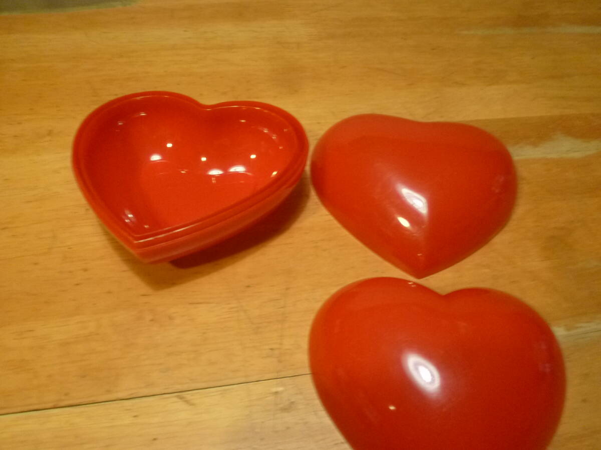 こちらはプラ製の真っ赤なハート型小物入れで、中にも同タイプの小物入れが入っているものです。2個としてもフタも利用の4個としても素敵だと思います。