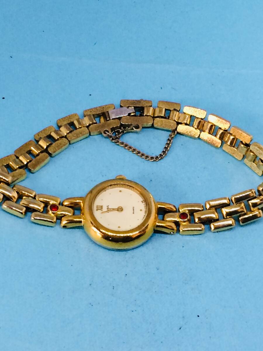 (k25)気品の2針(*'▽')セイコーアルバ・V232(電池交換済み)ゴールド・ブレスウオッチ腕時計USED(送料全国一律185円)素敵な時計です。