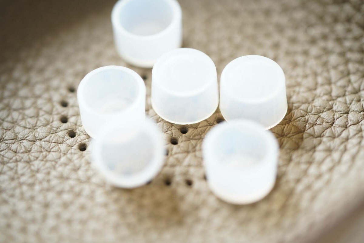 バッグ底についている底鋲を傷から守る為の半透明のシリコンカバーです。