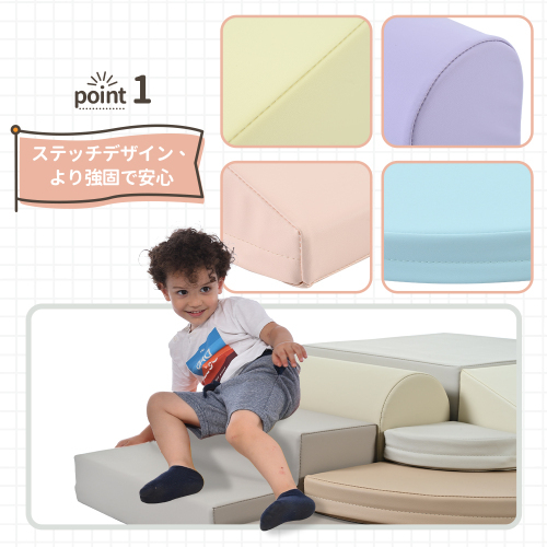【ベージュxブラウン】おもちゃ ソフトブロック アスレチック ブロック クッション 布製 玩具 大型 室内 遊具 滑り台 キッズスペース 子供
