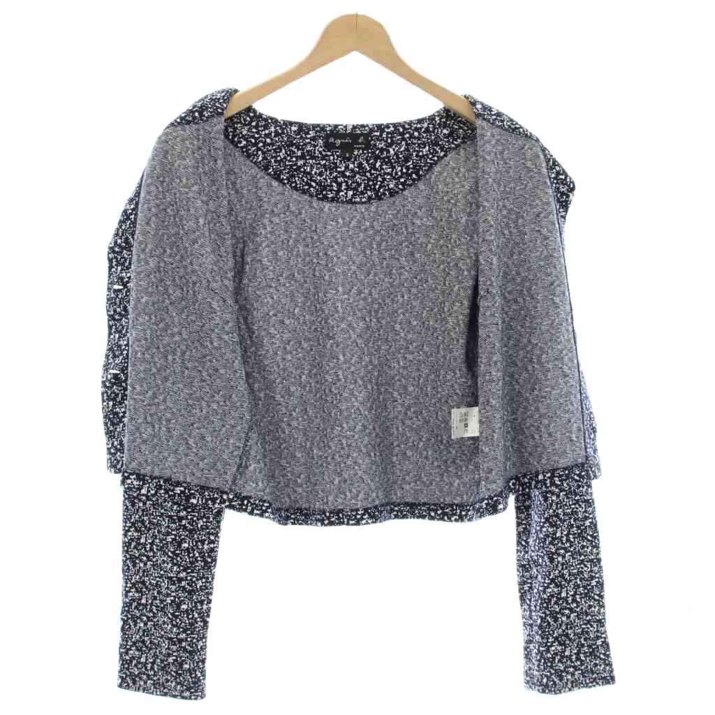 アニエスベー agnes b. ノーカラージャケット 総柄 2 紺 白 G127JDS8 /TK レディース
