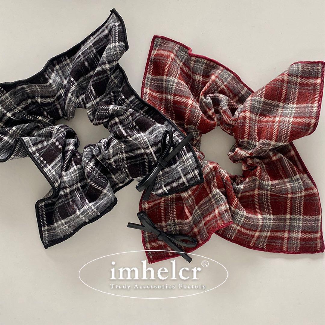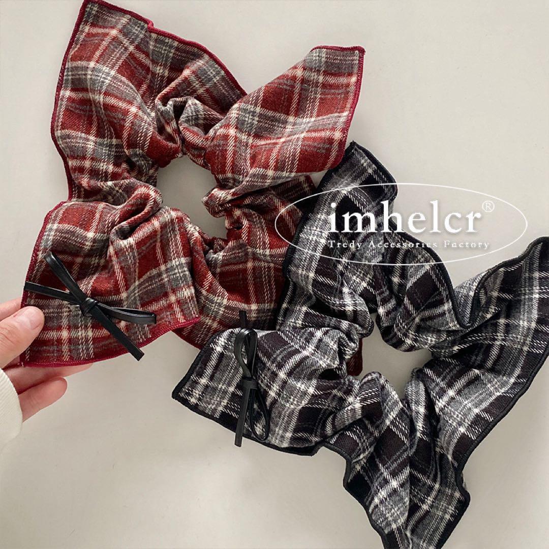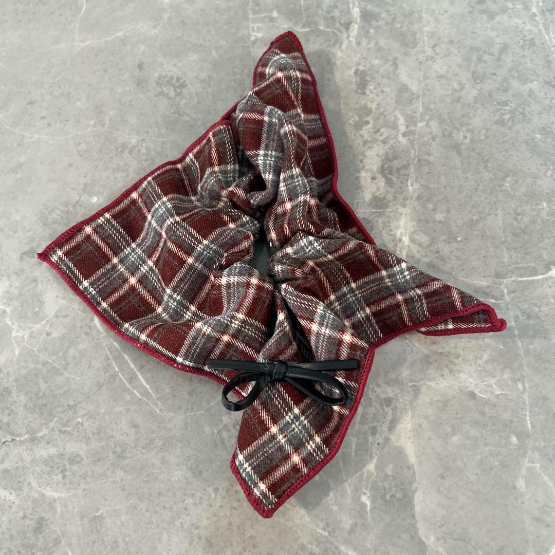 スクエアチェックシュシュ(レッド×ブラック×赤)