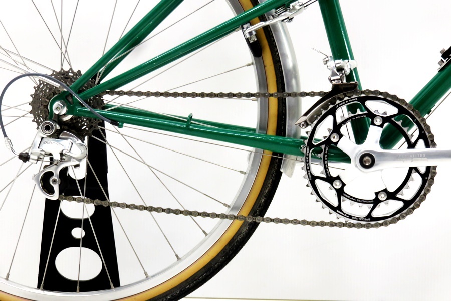 フレーム、その他外観:シートポスト、フェンダー、サドル、トップチューブ、、フォーク、チェーンステー、シートステー、クランkう、ダウンチューブなどに傷、BB付近に大きめな傷、ネジ、ナット、キャリアに錆があり、使用感の強いお品でございます。