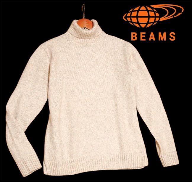 新品!! BEAMS HEART メランジ タートルネック ニット セーター ベージュ (M) ☆ ビームスハート メンズ 中厚 リラックスフィット 白系 ★
