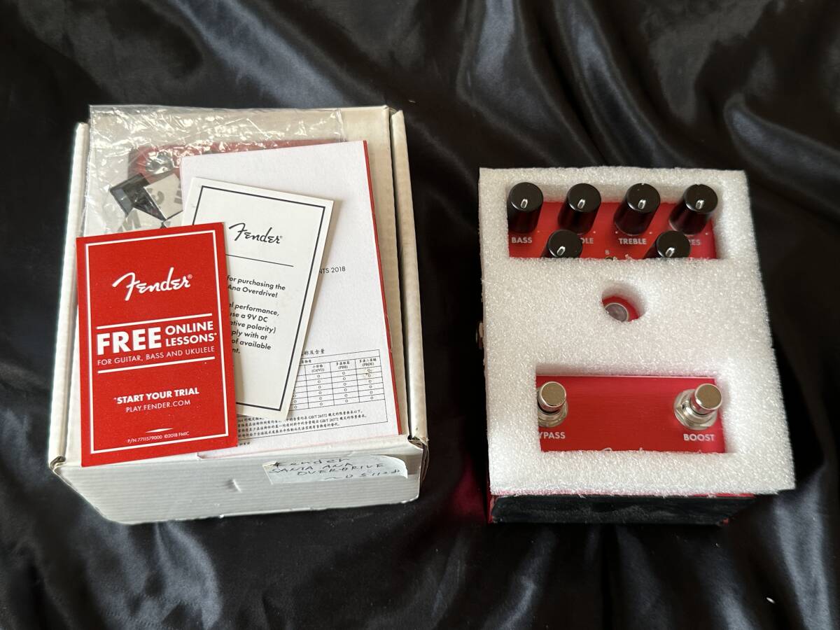 | 数ある商品の中から当方の商品を閲覧頂き誠にありがとうございます。 【商品詳細】 Fender Santa Ana Overdrive Peda lギタリストたちの想像力を刺激するトーンをいくつも生み出してきたフェンダーが新たに開発したストンプボックス、それがSanta Ana Overdriveです。FETテクノロジーを採用し、太くサチュレーションの効いたチューブオーバードライブサウンドを生成します。フレキシブルなトーンコントロールにより多彩なオーバードライブサウンドを実現し、ギターのボリュームコントロールに追随する繊細なドライブレスポンスが得られます。 ■特長 チューブアンプのパフォーマンスを再現するFETテクノロジー採用 A/Bオーバードライブ・ヴォイシング切り替え 高い視認性を誇るLEDバックライトを搭載したノブ Fender Amp Jewel LED マグネット式9 Vバッテリーホルダー 軽量でありながら優れた耐久性を誇るアルマイト筐体 電源: 9V DCセンターマイナス150mA 【商品状態】 ・使用していたため細かな傷があります。傷などの外観の状態については画像よりご確認ください。 ・9V電池にて動作確認済み。 ・各コントロール、スイッチもガリノイズ等無いことを確認しております。 【付属品】 ・箱、書類、ゴム足 | ||