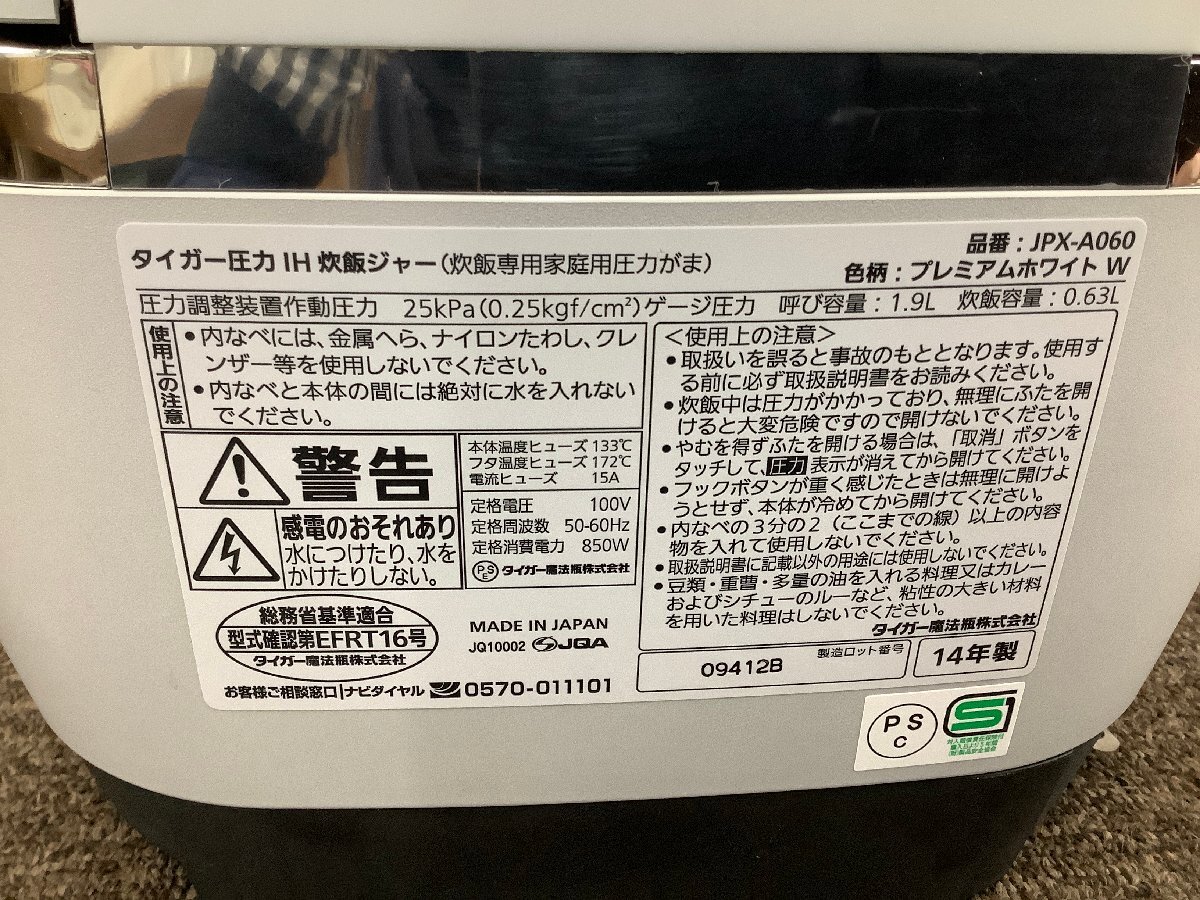 【掃除点検済】きれいなほう TIGER タイガー 圧力IH炊飯ジャー JPX-A060 プレミアムホワイト 3.5合炊き 2014年製 | |