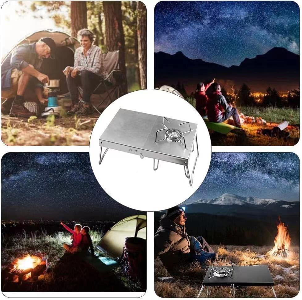 【幅広い用途】バーナーの断熱テーブルの下部に4つの支持点があり、砂などの他の場所で使用できます。脚の形状が真っ直ぐな場合、平地で安定させることはできますが、野外活動やキャンプで使用する場合、形状を安定させることは容易ではありません。ゆるい脚は曲がっており、様々な場面で安定して立つことができます。便利な屋外断熱テーブル。