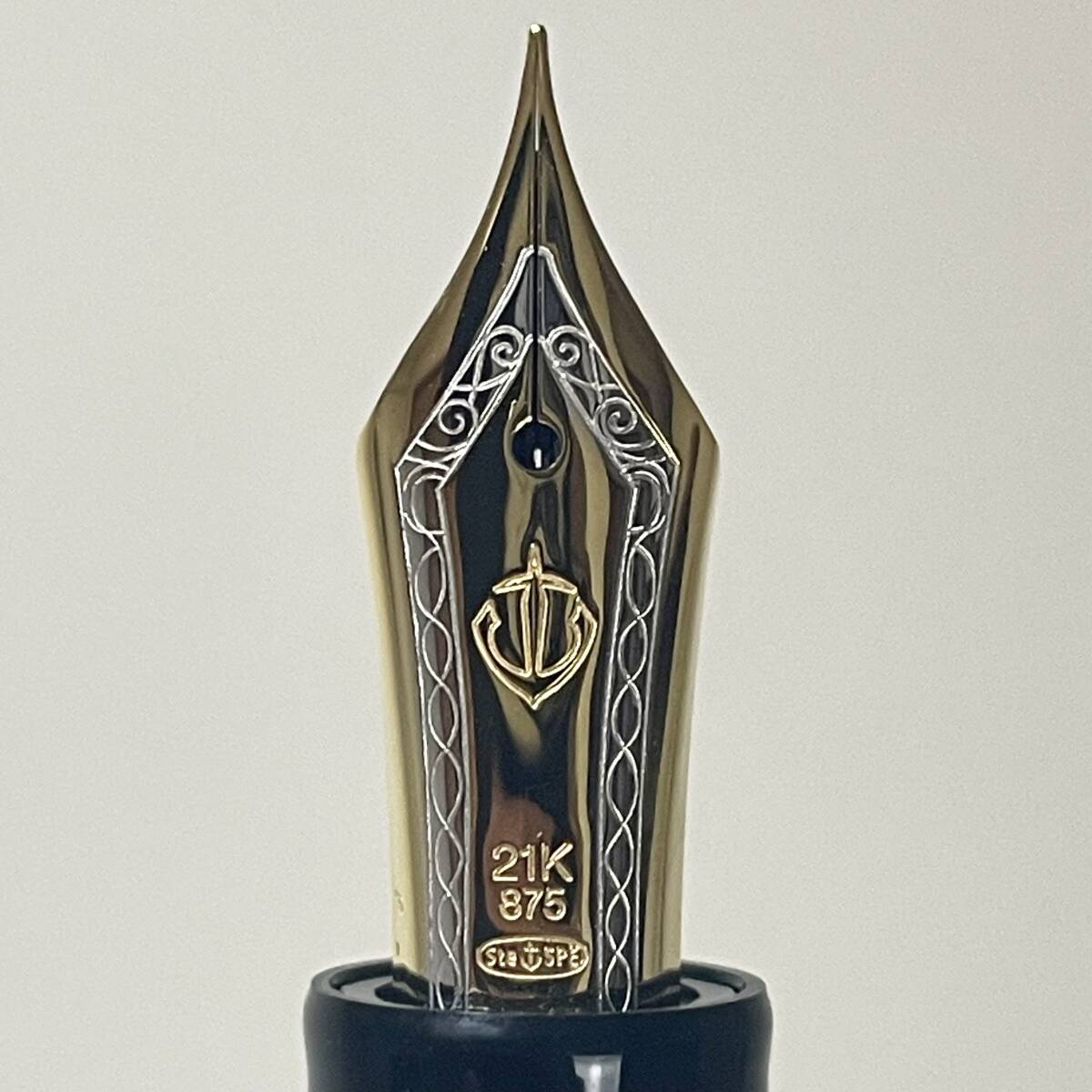 ニブは「 F 細字 21K」で新型バイカラーニブになります。