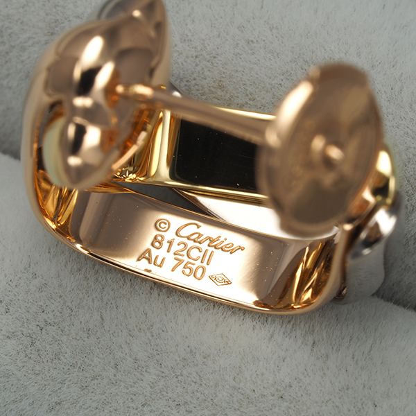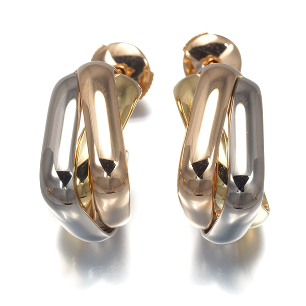 優雅な絡み合いと輝きが耳元を飾る カルティエのトリニティクッションピアスです。 |