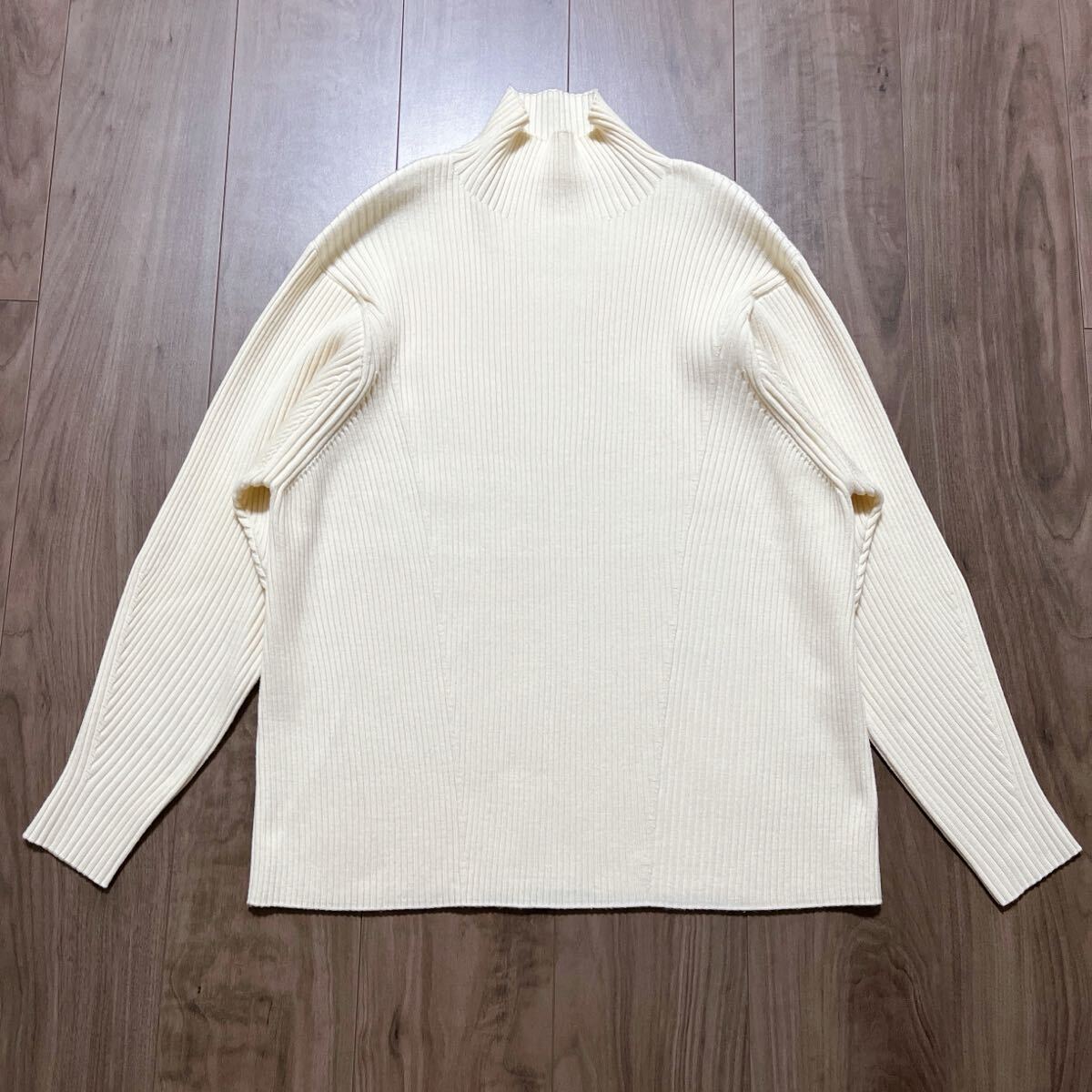ハイネックプルオーバーはほど良いゆとりがありつつも、前身頃に切り替えを入れることで裾にかけてすっきりとしたシルエットに仕上げました。